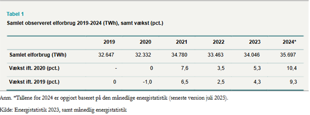 - Siden 2019 er det danske elforbrug steget med 3,05 TWh. Her har fjernvarmesektoren stået for 1,88 TWh, svarende til 61 procent af stigningen.