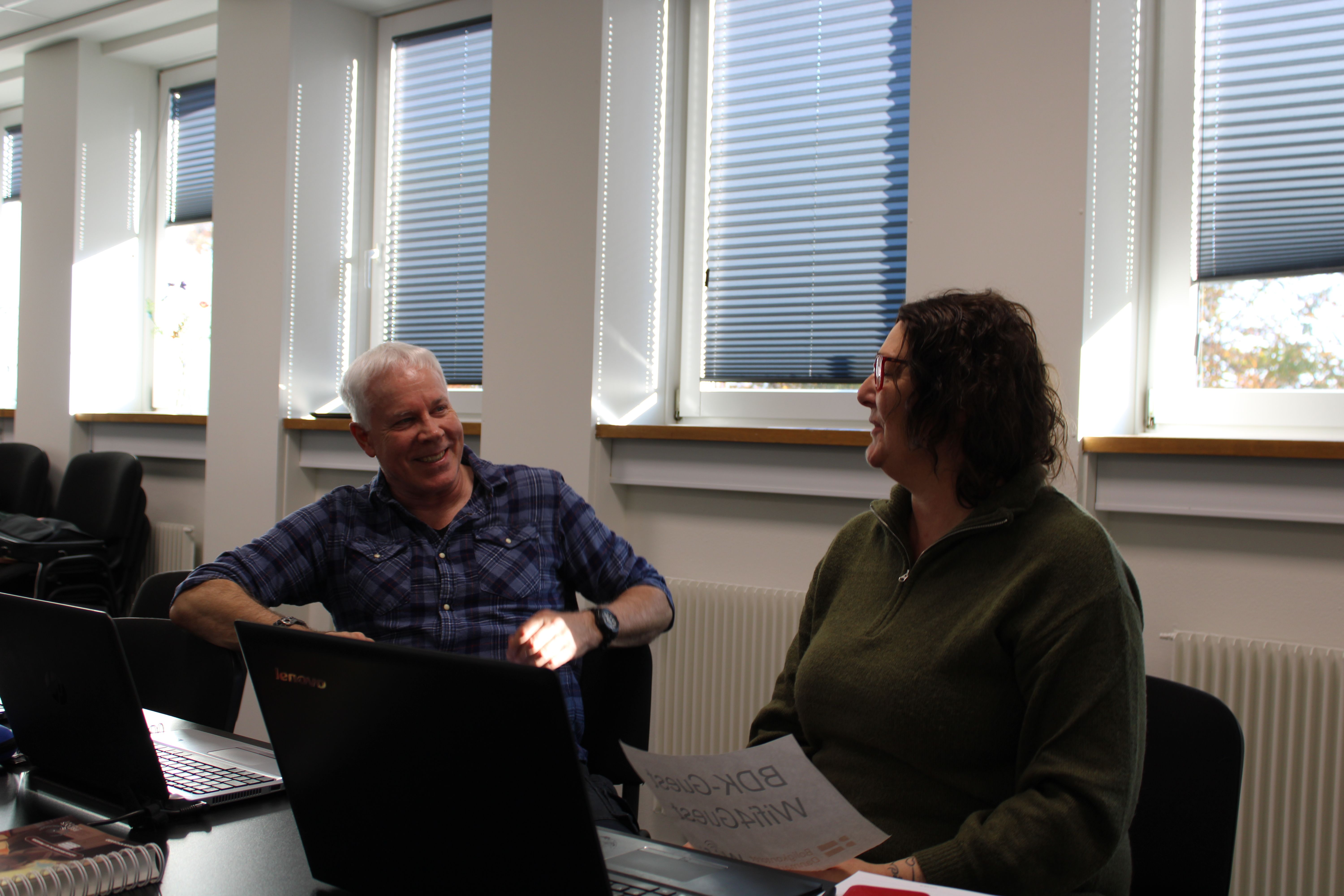 Lui H. Bruggisser og Per Birkelund Pedersen er boligsociale medarbejdere i hhv. Ribe og Bramming Boligforening. Hver dag møder de beboere, der har behov for hjælp til at færdes online og hvor et større kendskab til teknologien og sproget kan være en stor hjælp i det daglige.