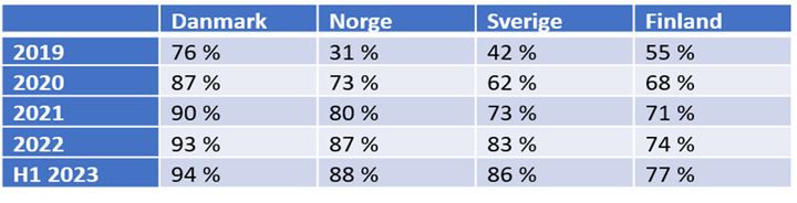 – Det er ganske bemærkelsesværdige tal, hvor Norden er det sted i verden, hvor flest i dag klarer sig helt uden kontanter på lommen. Sverige og Norge ligger i toppen af målingen, men