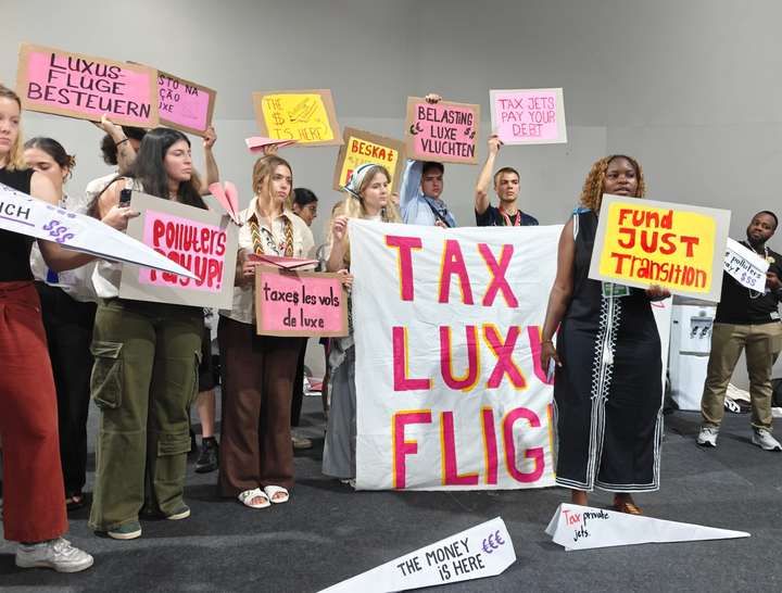I forbindelse med COP30 lancerer Global Solidarity Levies Taskforce på lørdag en international koalition af lande, der vil indføre nationale afgifter på nogle af de største fossile forurenere - herunder luksusflyvninger og privatfly - for at finansiere de skader, klimakrisen forårsager i verdens fattigste regioner. Danmark ser imidlertid ikke ud til at stå som medafsender på initiativet, og derfor demonstrerede danske aktivister her til aften på COP30 for at presse Danmark til at tilslutte sig koalitionen.