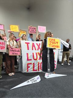 For at sætte fokus på Danmarks fravær i koalitionen gennemførte aktivister fra Den Grønne Ungdomsbevægelse torsdag kl. 16 brasiliansk tid en markant demonstration under COP30. Store papirfly med slogans på sprog fra lande, der endnu ikke har tilsluttet sig koalitionen, fløj gennem hallen og kredsede om et stort banner med budskabet “Tax Luxury Flights”. Aktivisterne delte samtidig vifter ud med samme krav og pegede på den store ulighed mellem dem, der udleder mest, og dem, der betaler prisen.