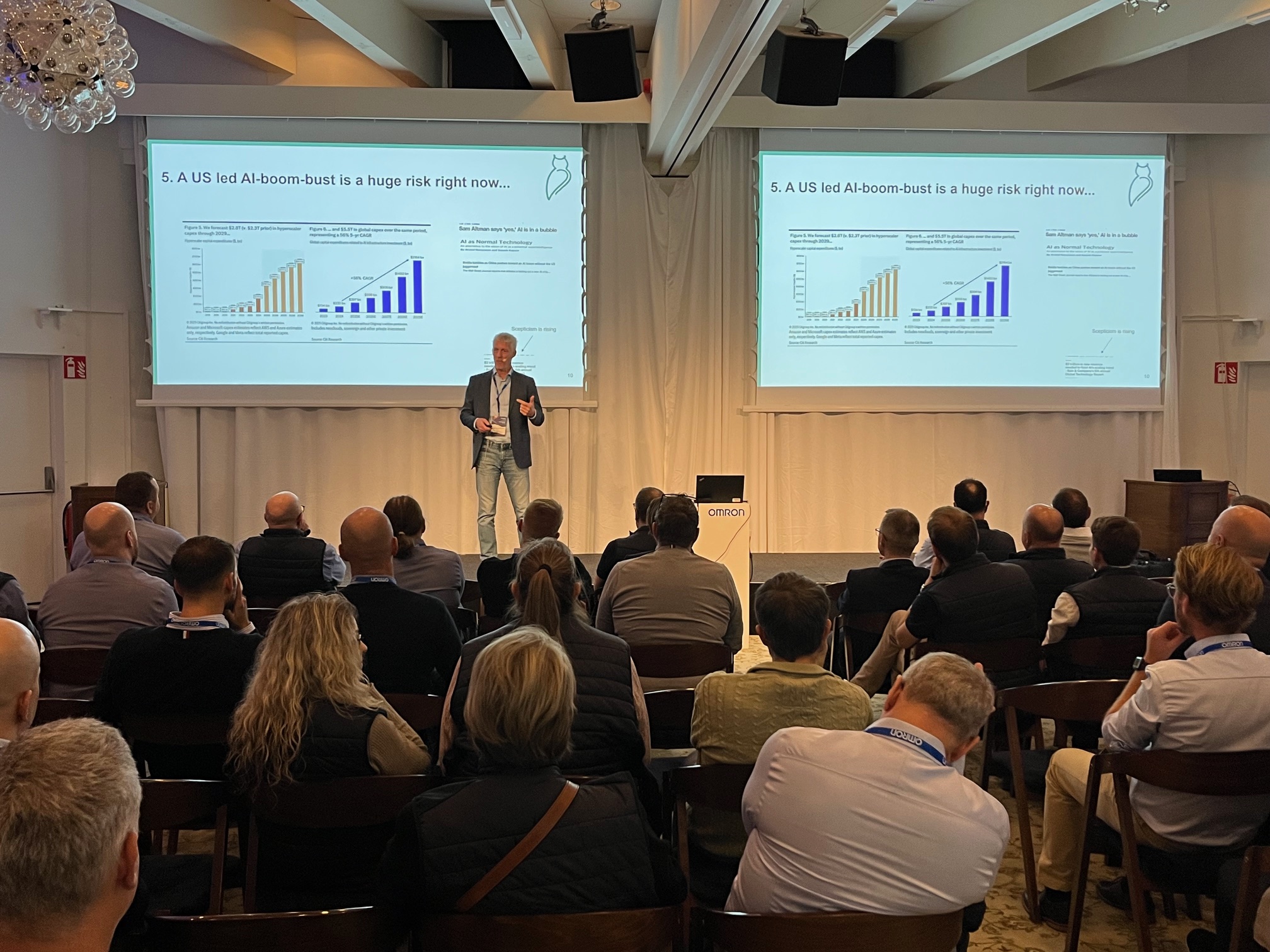 Han var inviteret til Ystad af OMRON for at sætte scenen for den makroøkonomiske udvikling de kommende år, og hvad den udvikling kommer til at betyde for industrien.