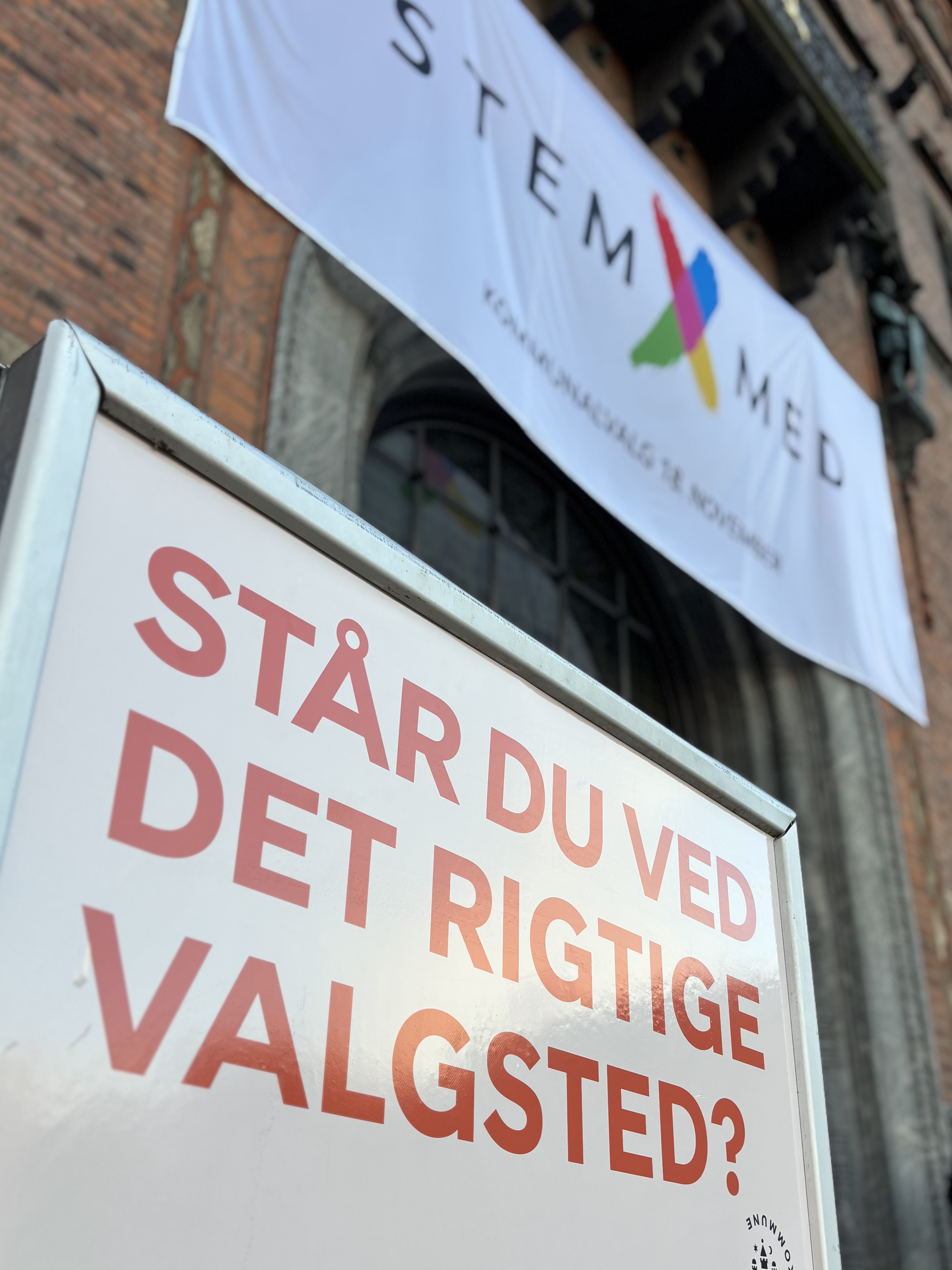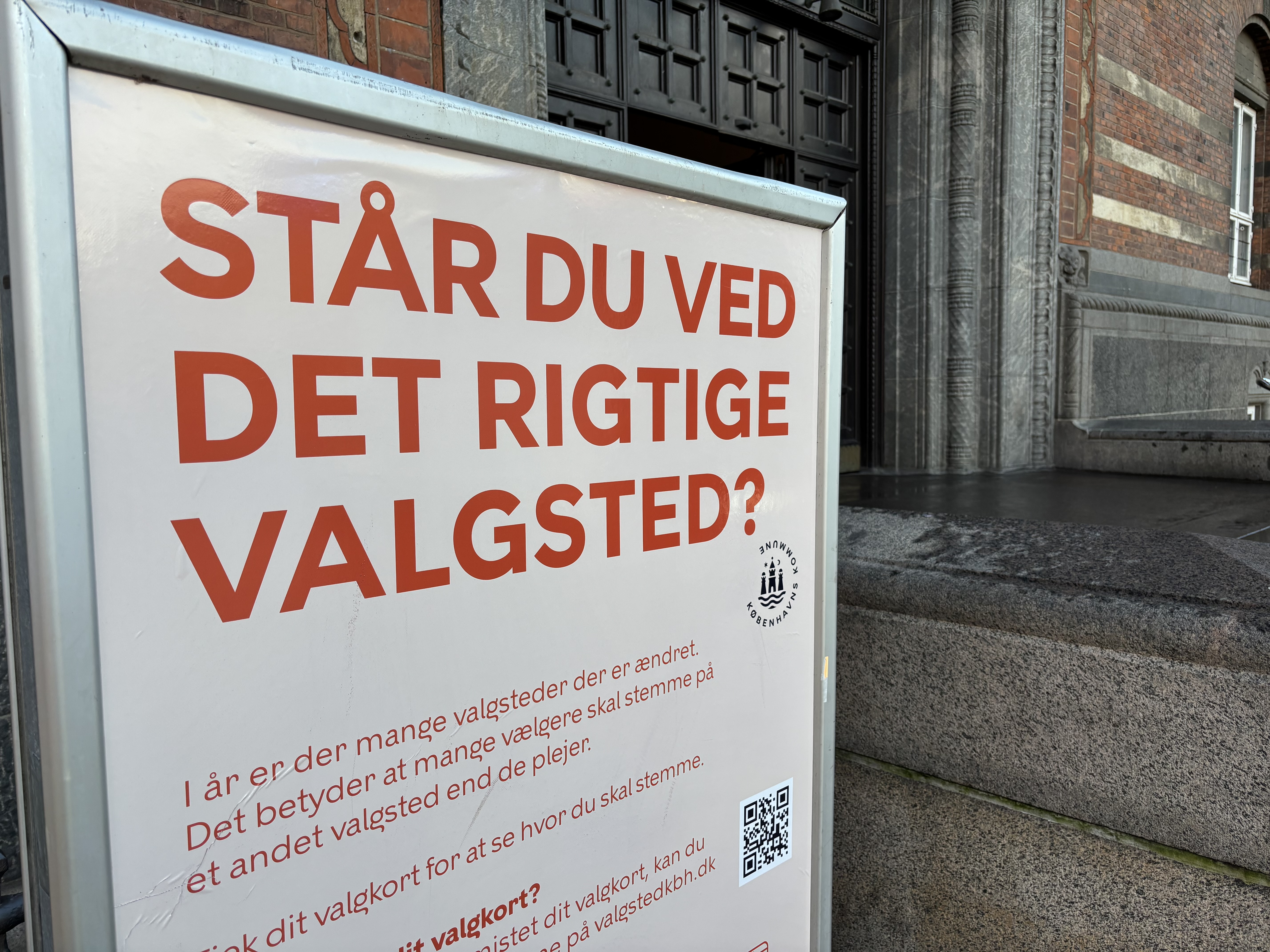 Plakater ved valgsteder i Københavns Kommune skal minde omkring 77.000 borgere om at tjekke, om de befinder sig ved det rigtige valgsted.