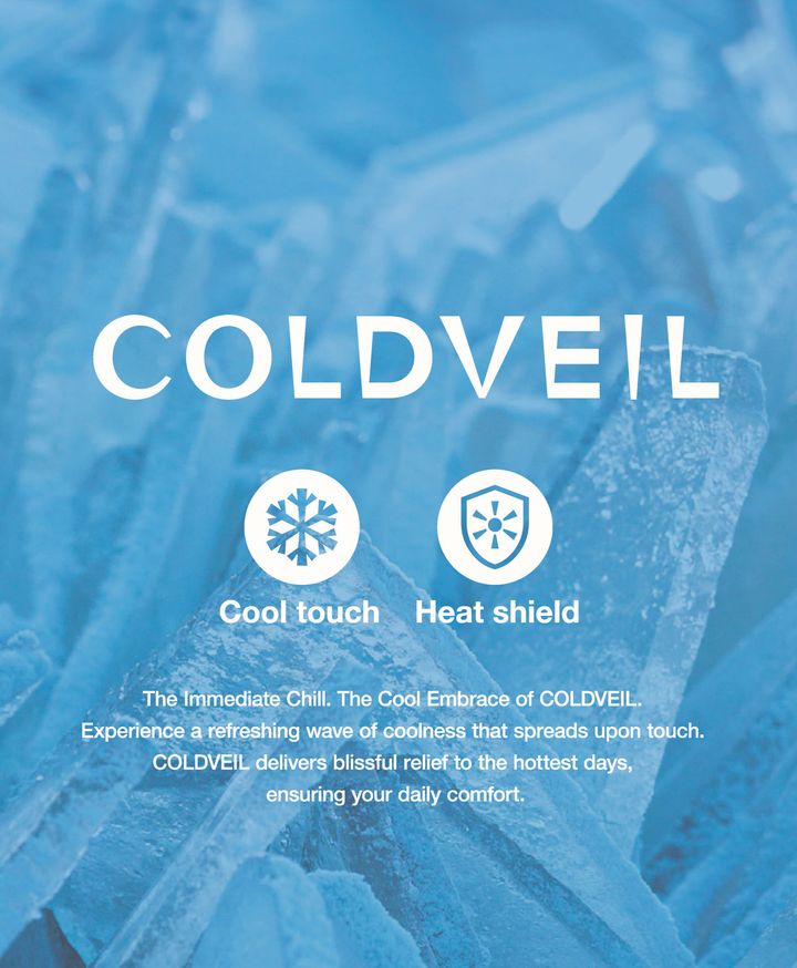 COLDVEIL is a nylon material featuring three functions: heat shielding, quick-drying, and cooling sensation. Through the incorporation of titanium dioxide, it possesses a cooling sensation generated by absorbing heat and heat shielding properties. Making it an effective material for various applications in hot environments.