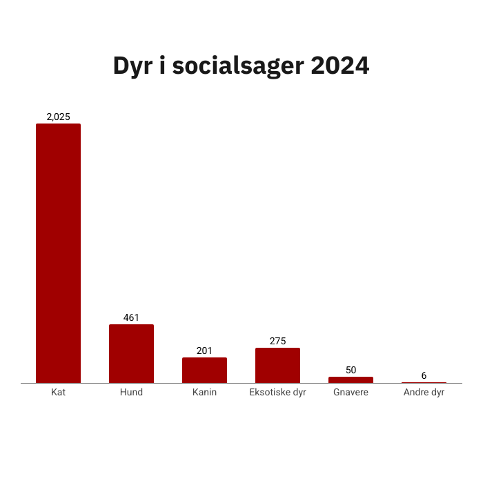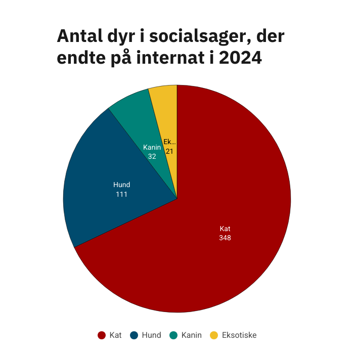 I 2024 tog Dyrenes Beskyttelses internater i alt imod 111 hunde i socialsager og i alt 512 dyr.