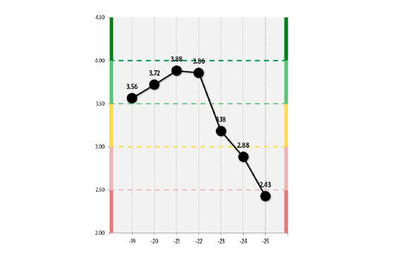 The Reputation&Trust 2025 study was conducted in Denmark in May–June 2025. A total of 2,711 Danes responded to the survey, providing a total of 6,938 organizational evaluations.