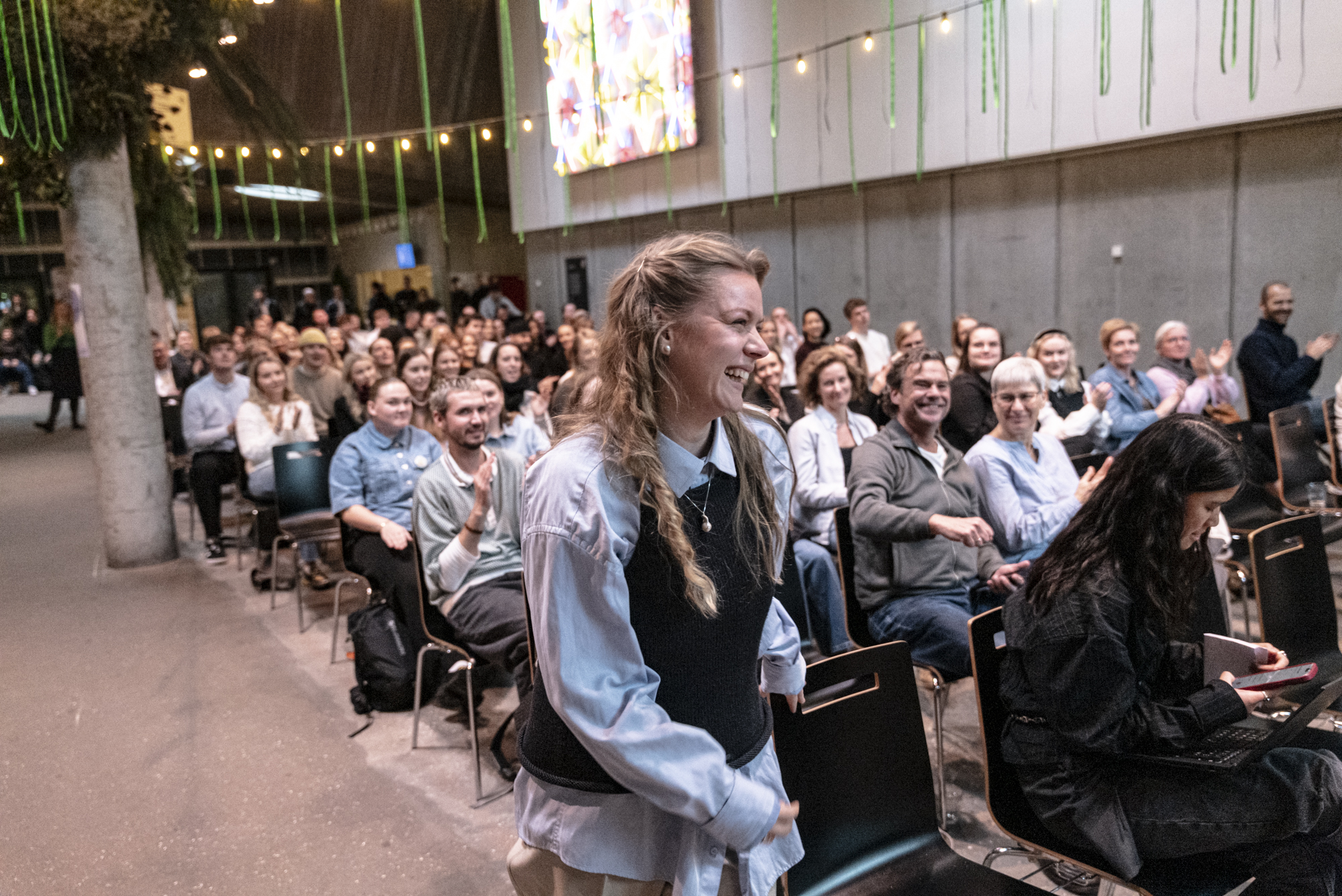 Selvom der har været nerver på hele dagen, så har det været så skønt. Virkelig gode dommere, som har været virkelig søde og givet god feedback. Så har det været inspirerende at høre andre oplæg og pitches. Det har bare været virkelig fedt.