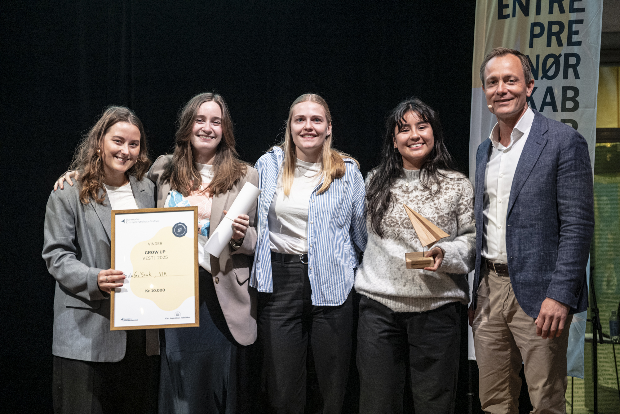 Studernede fra VIA i Aarhus vandt begge iværksætterkonkurrencer for studenterstartups: 'grow up' og 'idékonkurrencen', da Fonden for Entreprenørskab afholdt Danmarks Entreprenørskabsfestival på Godsbanen i Aarhus.
