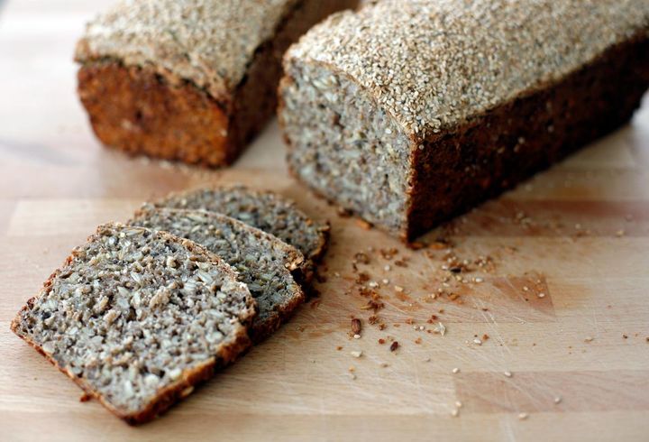 Vegetarisk aftensmad består af rugbrød, toast og pasta