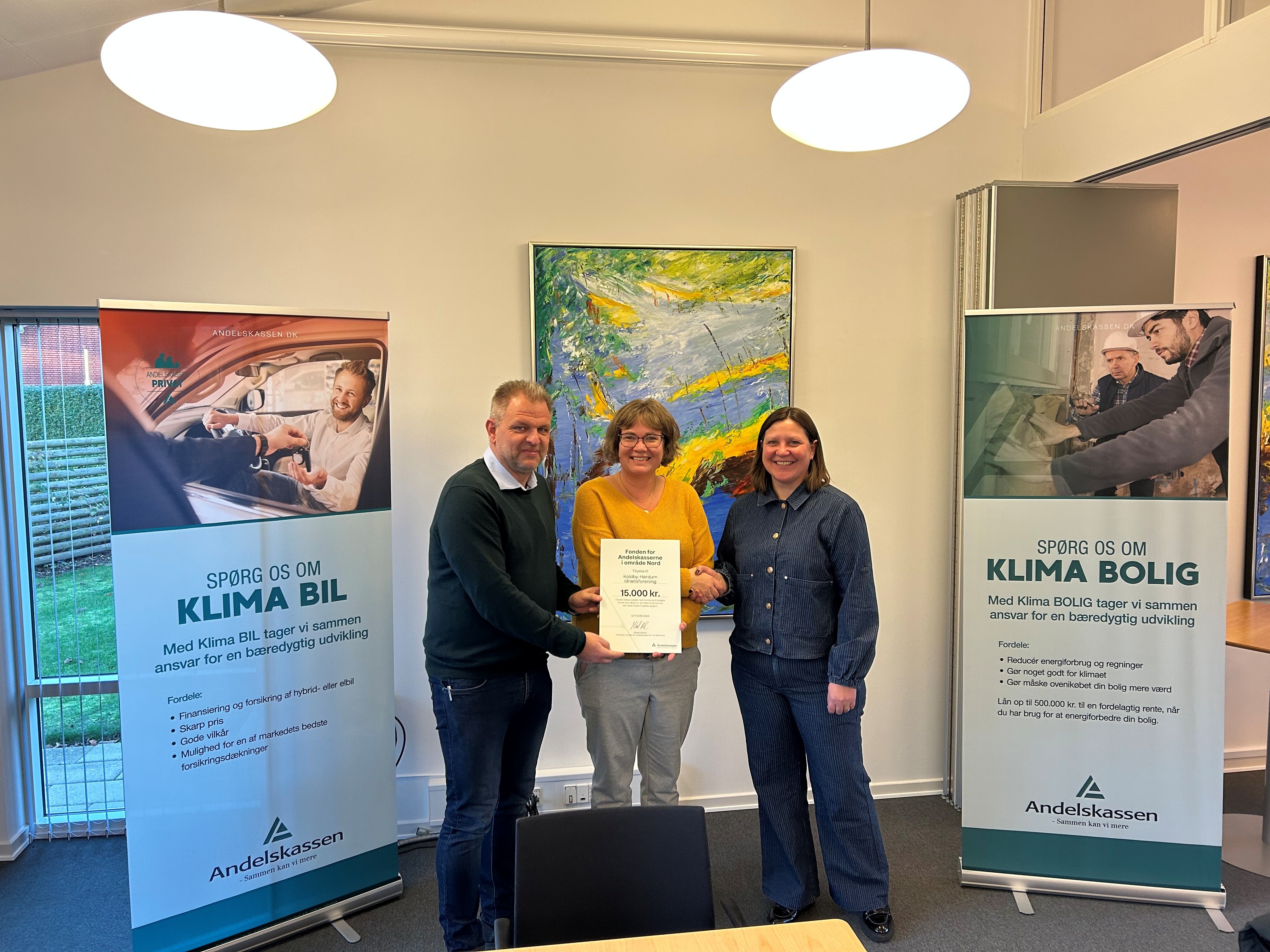 For nylig mødtes ildsjæle fra det lokale initiativ i Andelskassen i Koldby for at modtage den økonomiske håndsrækning fra fonden. Her deltog centerdirektør i Andelskassen i Koldby, Lene Hebsgaard Larsen og erhvervschef Jesper Elkær også.