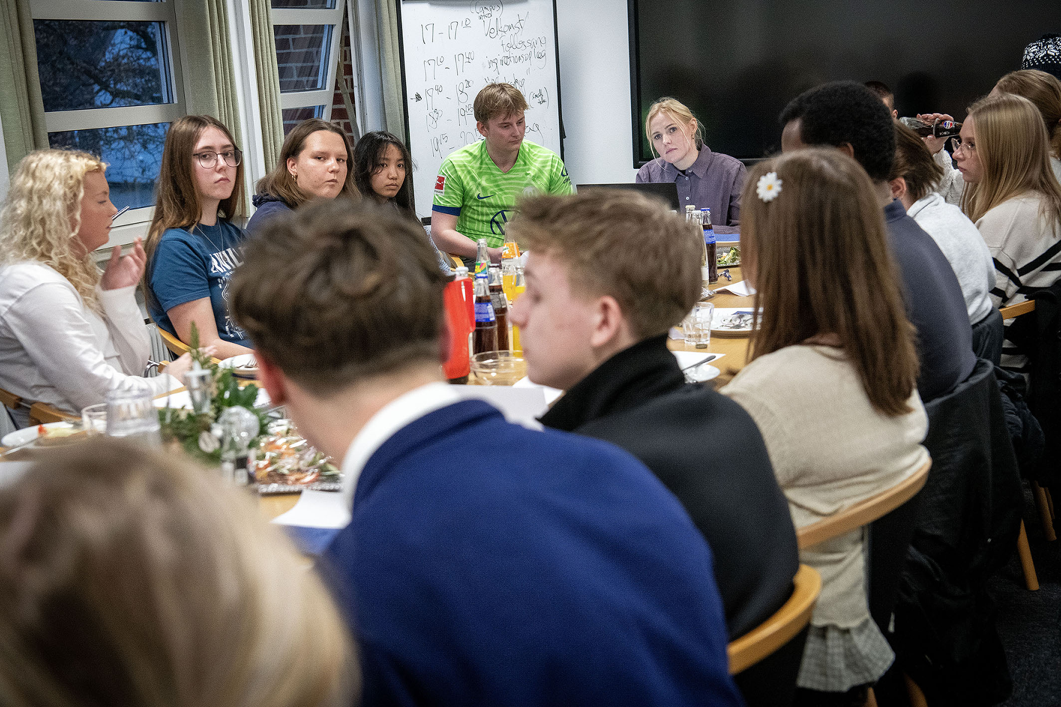 En gruppe unge mennesker sidder rundt om et bord til et møde i Tønder Unge- og Kulturråd.
