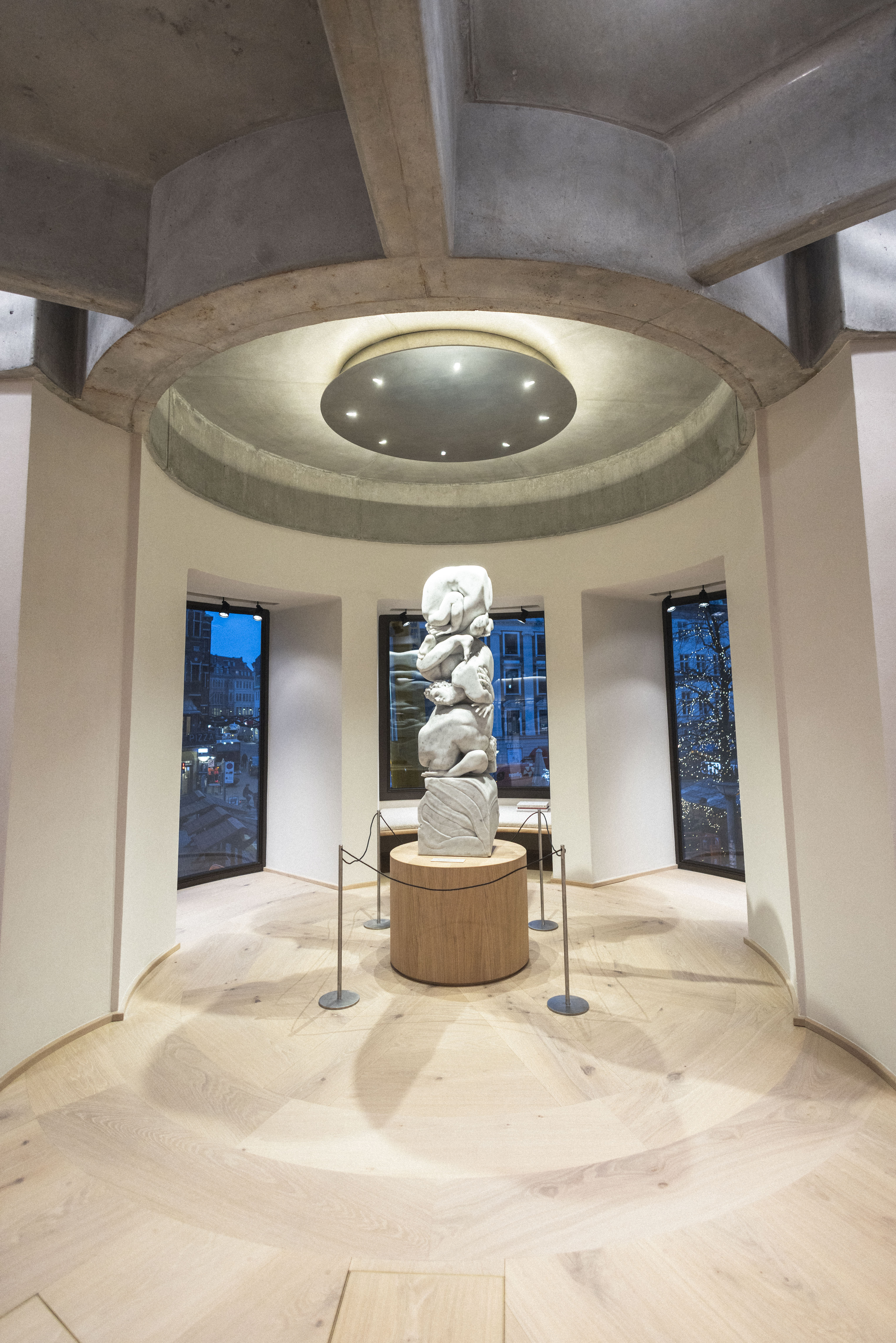Kun facaden står tilbage i den historiske hjørnebygning på Gammeltorv, som efter flere års omfattende ombygning nu genåbner som flagship store for modevirksomheden BESTSELLER. Renoveringen er gennemført med blik på at skabe en moderne retailbutik men med stor respekt for bygningens oprindelige arkitektur og bevaringsværdighed.