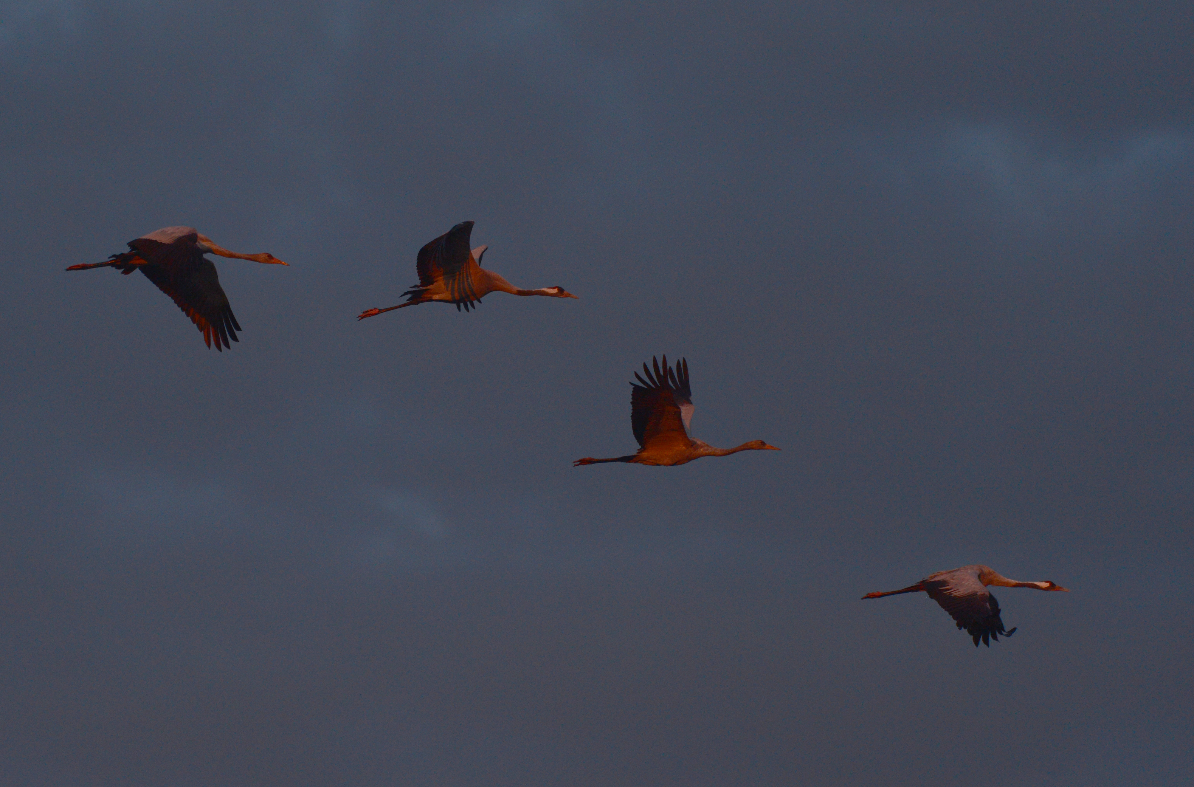 På trods af et svirp vinter med sne og frost i november holder flokke af traner fortsat til i Danmark her ved indgangen til julemåneden.