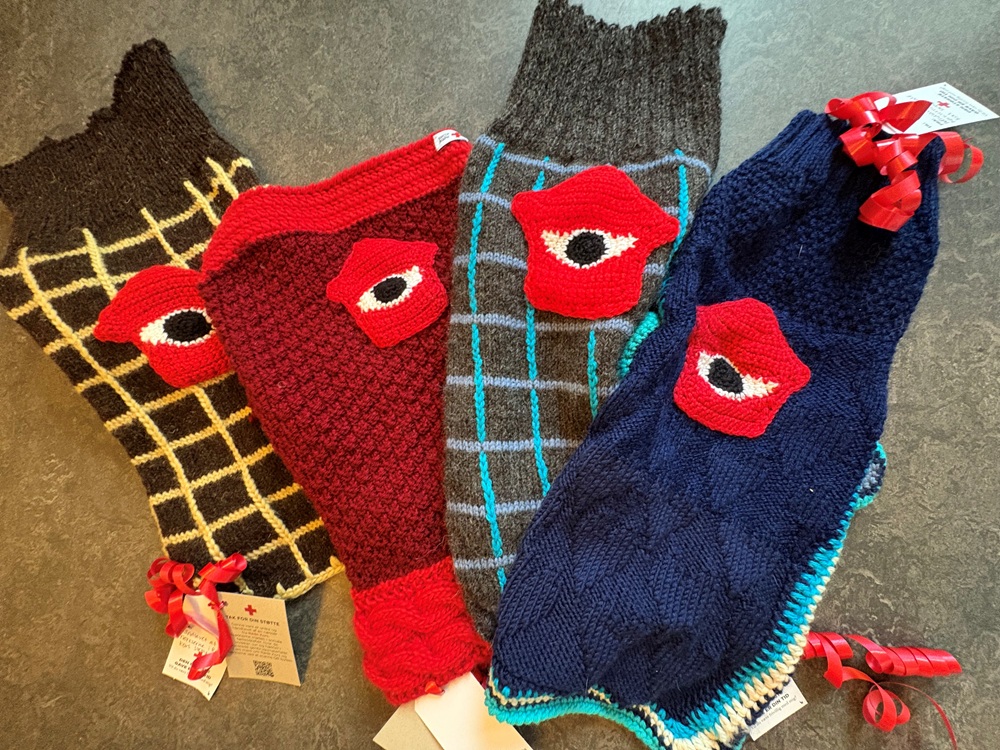 Du kan deltage i konkurrencen om de fine, hjemmestrikkede hundeveste på nabohjælps Facebook-side.