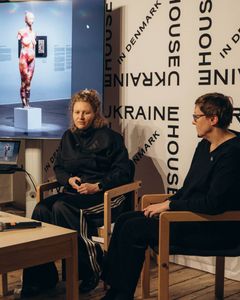 The opening program began with welcome remarks by Nataliia Tkachenko, founder of Spilne Art, and Nataliia Popovych, Chairperson of the Ukrainian House in Denmark. This was followed by an Artist Talk with Mariia Kulykivska, which opened with a special address from Ukraine’s Minister of Culture, Tetyana Berezhna. The artist spoke about how the body retains the memory of war, how art becomes a means of processing trauma, and what it means to continue creating when the world around you is falling apart.
