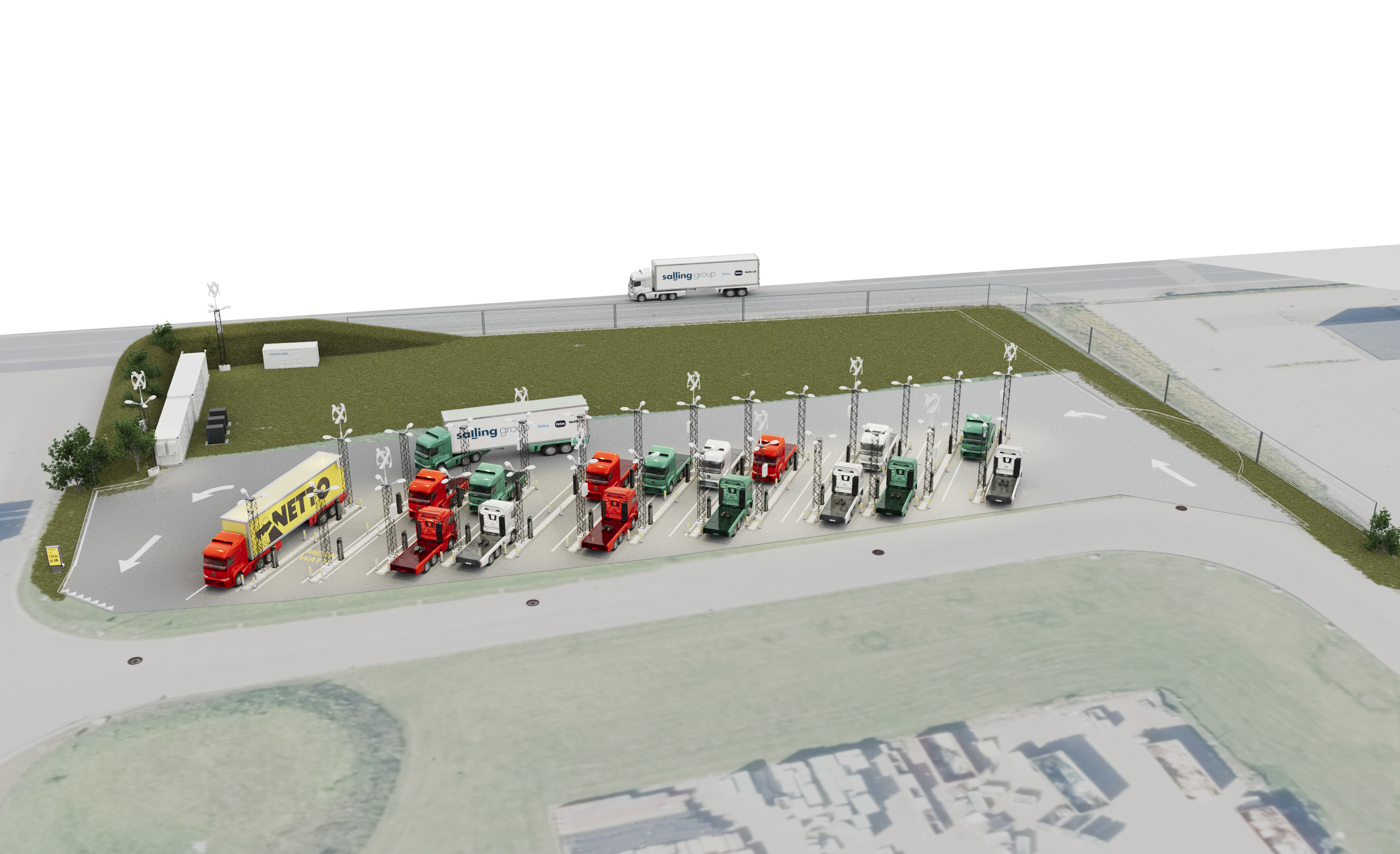 Hvert år kører mere end 60.000 lastbiler ud fra Nettos lager i Køge med over 1,7 mio. paller til hundredvis af Netto-butikker, og den nye ladepark sikrer, at mange af disse leveringer fremover kan ske med eldrevne køretøjer.