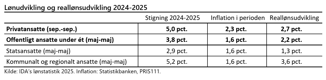 Det forgangne år har budt på en pæn gennemsnitlig reallønsfremgang for IDA's medlemmer i både den private og offentlige sektor.