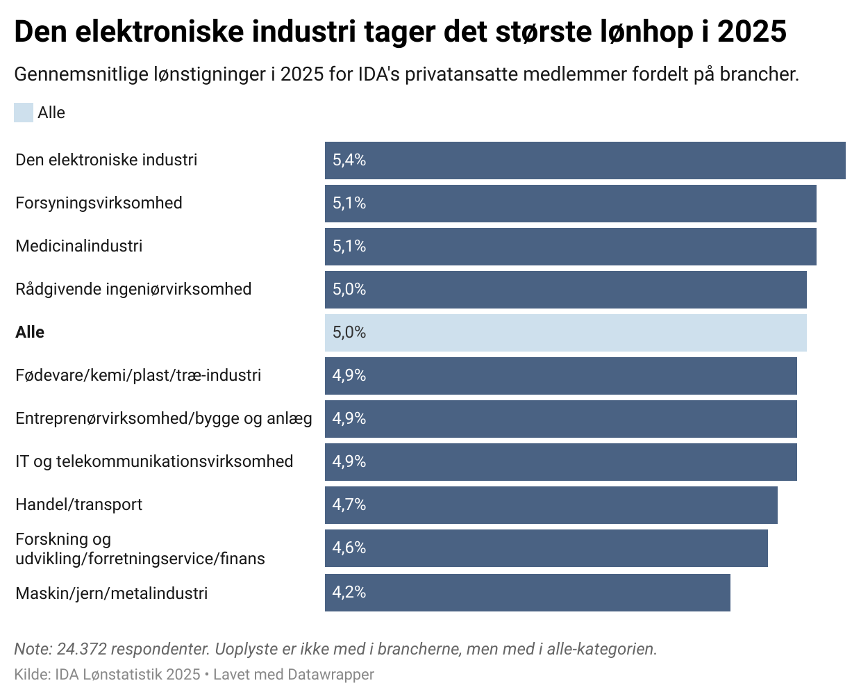 Det viser IDA’s lønstatistik, som offentliggøres i dag.