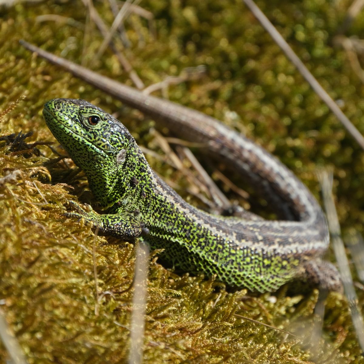 Et markfirben på mos i Saksfjed Vildmark.