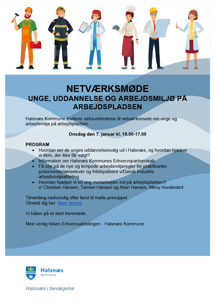 Halsnæs Kommune inviterer virksomhederne til netværksmøde om unge, uddannelse og arbejdsmiljø på arbejdspladsen.