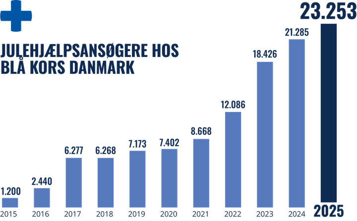 Den sociale hjælpeorganisation Blå Kors Danmark uddeler i år julehjælp til knap 11.000 økonomisk pressede børnefamilier.
