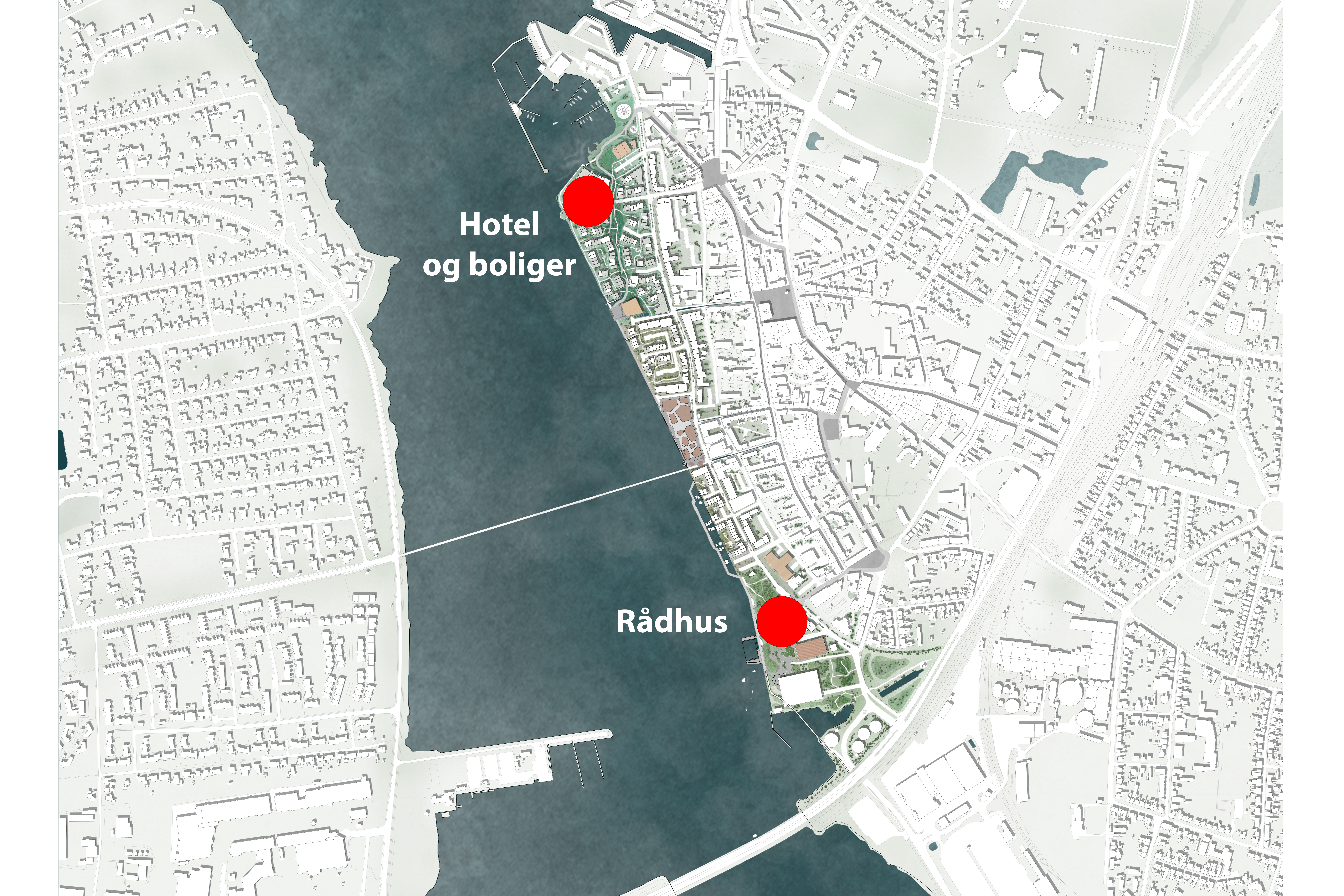 Rådhuset er det første af de tre byggerier, som Havneudvikling ApS skal opføre, og det bygges i den sydlige ende af havnen tæt ved Kong Frederik IX’s bro. Området kan ikke bruges til eksempelvis boliger på grund af støj- og miljøkrav.