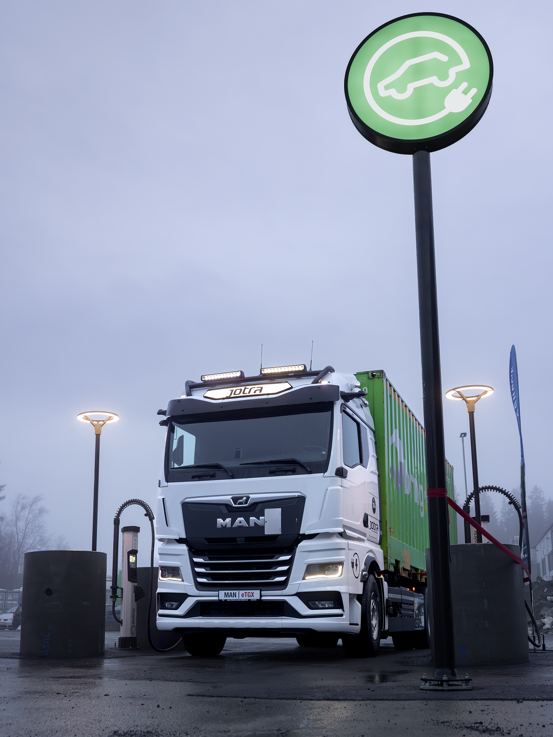 Bergen, – MAN tar nå et nytt skritt i utviklingen av elektrisk tungtransport i Norge gjennom et samarbeid med Eviny om ladeinfrastruktur for elektriske lastebiler og busser. Målet er å tilby transportbedrifter en komplett og pålitelig løsning, som kombinerer elektriske kjøretøy med tilgjengelig og effektiv lading. «For MAN er dette samarbeidet strategisk viktig. Vi ønsker å tilby kundene en helhetlig løsning – fra elektriske lastebiler og busser, til service, support og etablering av ladestasjoner som denne,» sier Pål Gravdal, Branch manager, MAN Truck and Bus AS - Bergen. «Slik får våre kunder et sammenhengende nettverk som gjør overgangen til elektrisk transport både enklere og tryggere.» «Eviny støtter satsingen med ladeinfrastruktur som gjør det mulig å holde tungtransporten i bevegelse over hele landet, » sier Odd Olaf Askeland, Head of Public Charging, Eviny Elektrifisering AS Under en demonstrasjon ble det tydelig hvor enkelt det er å bruke MAN eTruck. Sjåføren koblet til ladeka