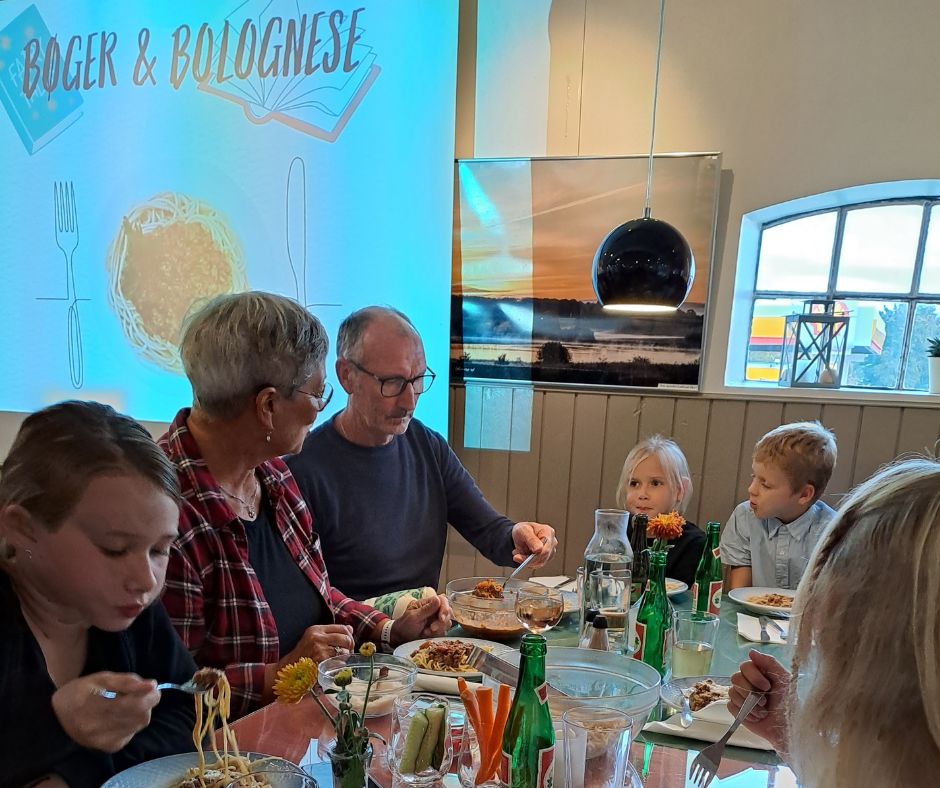 'Bøger og Bolognese' er derfor et forsøg på at stoppe den fortravlede tid et øjeblik, styrke fællesskabet og skabe hyggelige rammer for kvalitetstid med børnene.