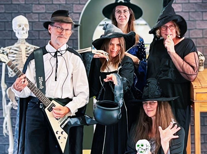 I den anledning kan du træde ind i heksebibliotekets u-hyggelige rum, hvor de kreative idéer bobler i kedlen. Her kan du klippe, klistre, male og perle dig frem til spøgelser, flagermus og andre mørke væsner – til de dystre toner af heksemesterens guitar.