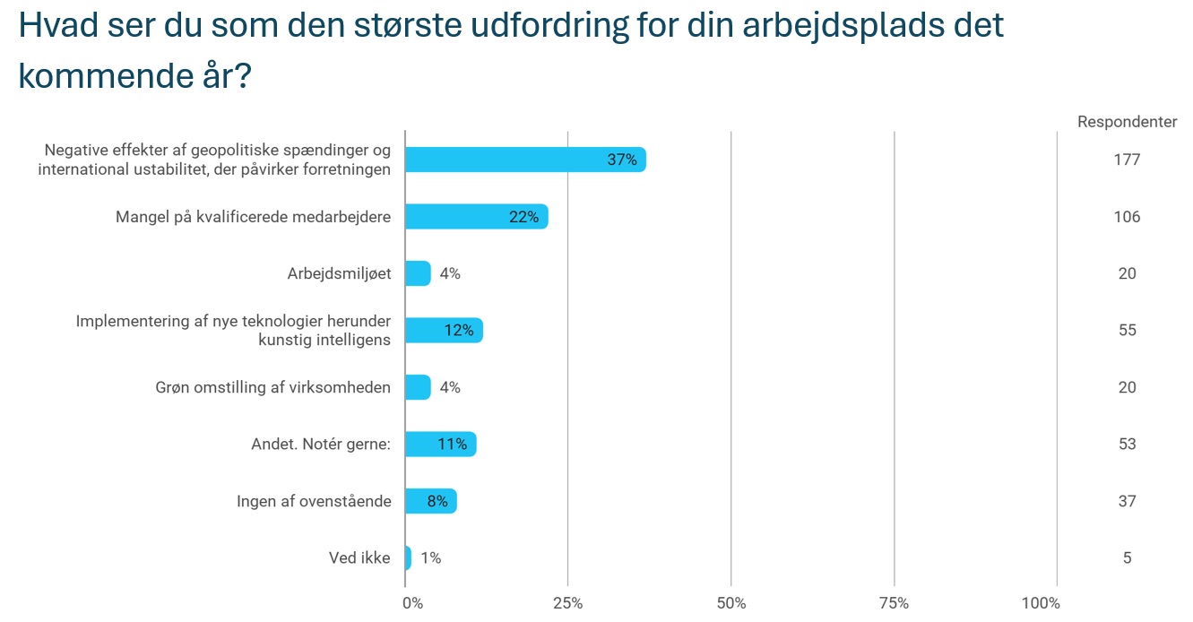 Tallene er et udtryk for, at danske virksomheder står overfor globale udfordringer, der påvirker alt fra leverandørkæder til eksportmarkeder og råvarepriser. Udfordringer, som kan ændre spillereglerne fra den ene dag til den anden.