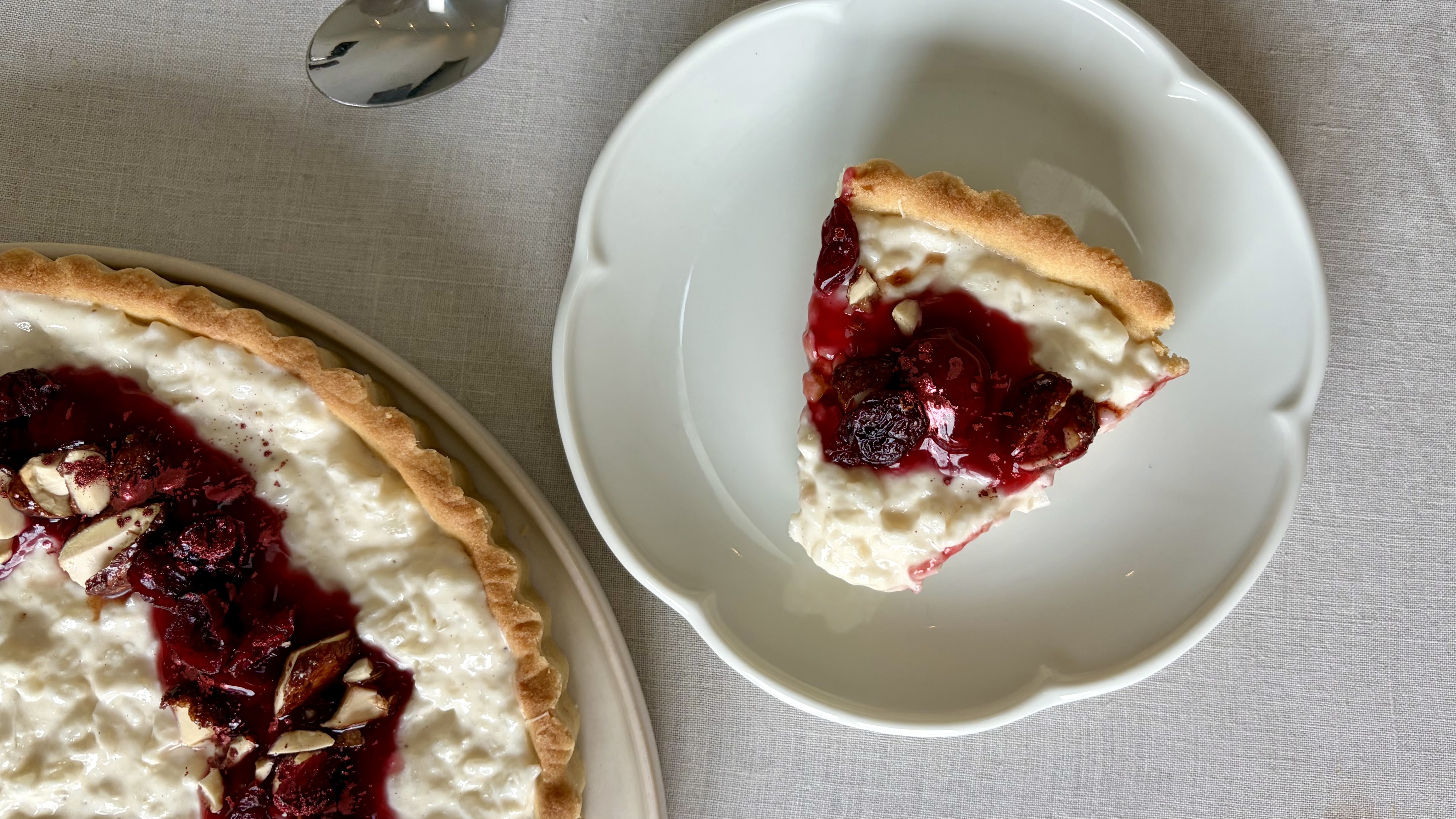 • Desserttærte med rester af risalamande
