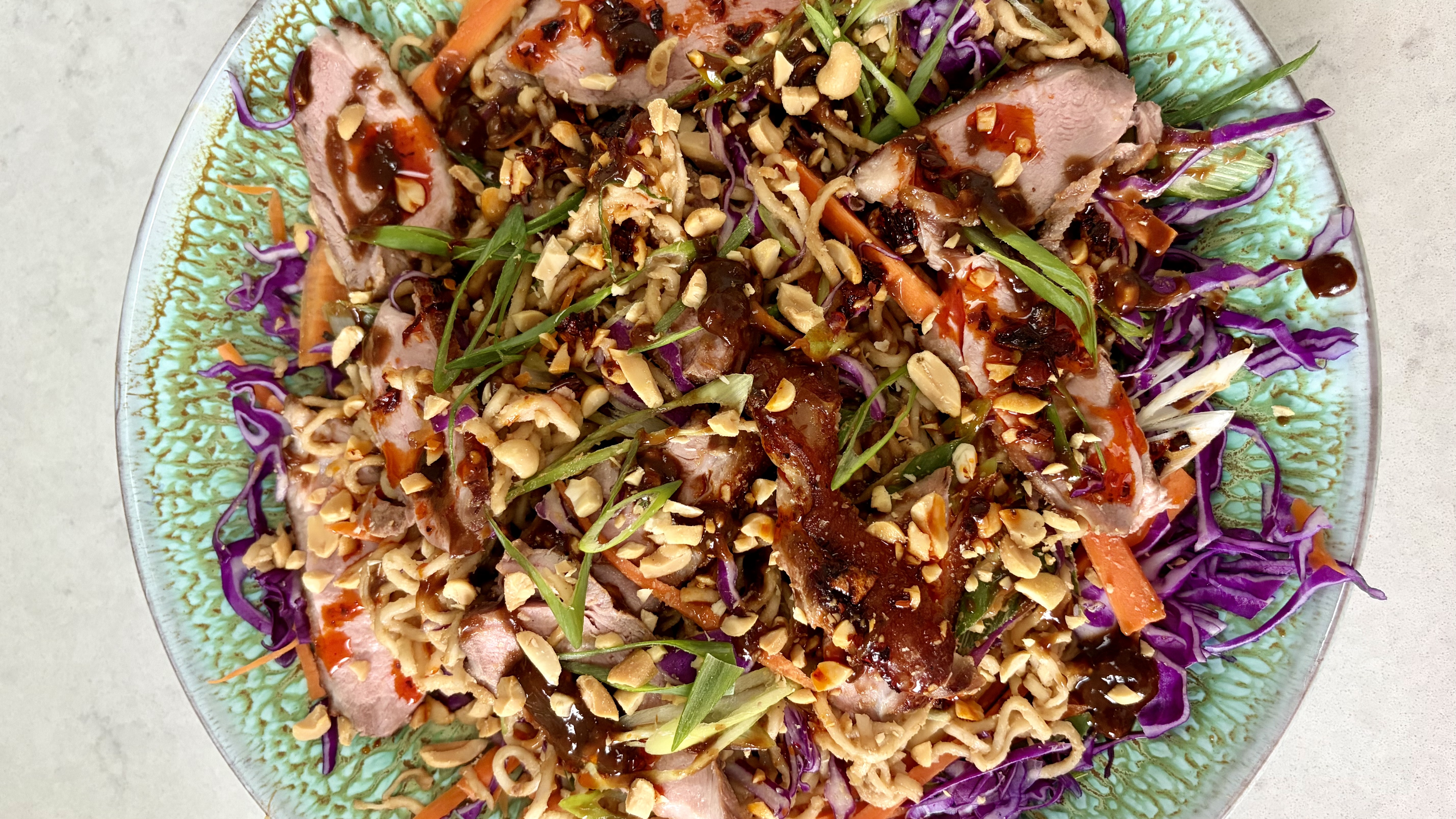 • Stegt and med nudler