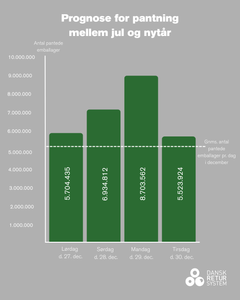 Vil man øge chancen for fri bane ved automaten mest muligt, er det bedst at vælge andre dage end mandag d. 29. december, der forventes at blive danskernes største pantdag med næsten 8,7 mio. pantede dåser og flasker.