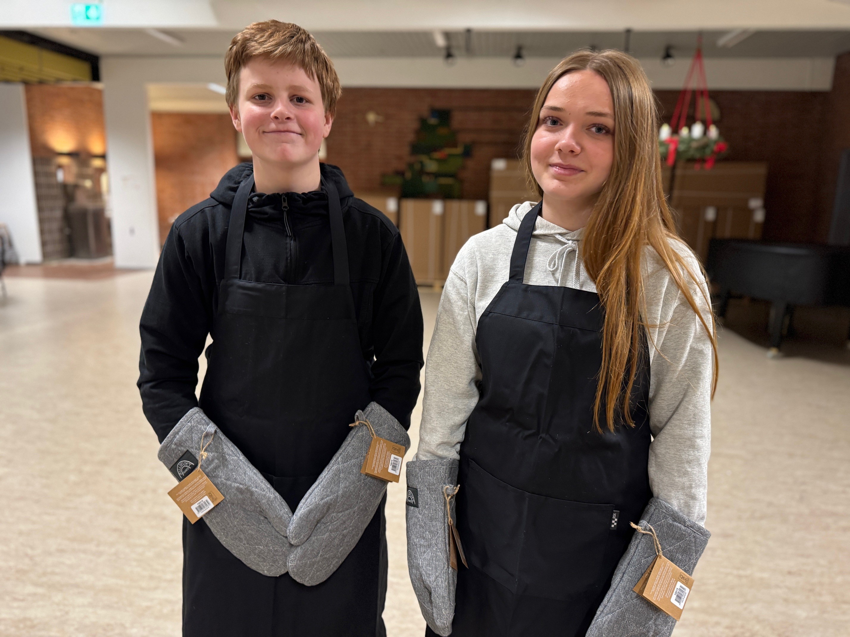 Elevrådsmedlemmer Vilads og Sara fra Glamsbjergskolen forventer, at forsøget med skolemad vil give bedre trivsel hos de ældste elever.