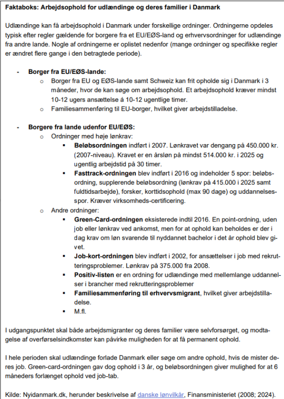 • Ordningen betinges af, at ansættelser sker under dansk overenskomst og aflyses, hvis bruttoledigheden når over 3,75 pct.