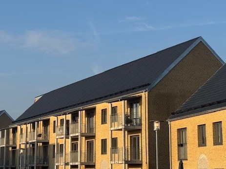 Hele bebyggelsen havde gamle eternittage, som var nedslidte og utætte. Tagene udskiftes med et Steni Protego tag, som har en forventet levetid på mere end 60 år.