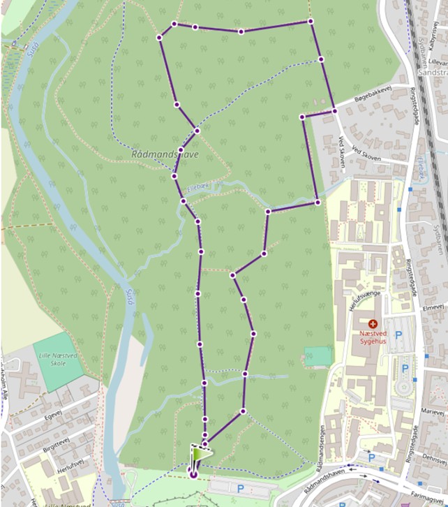 Ruter Folkeskoven: 1,2 km. pr. runde