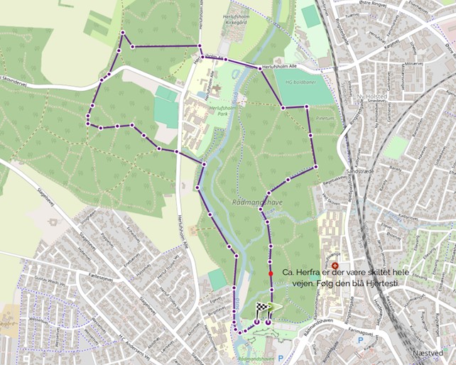 Ruter Herlufsholmskoven: 4,2 km. og 2,4 km.