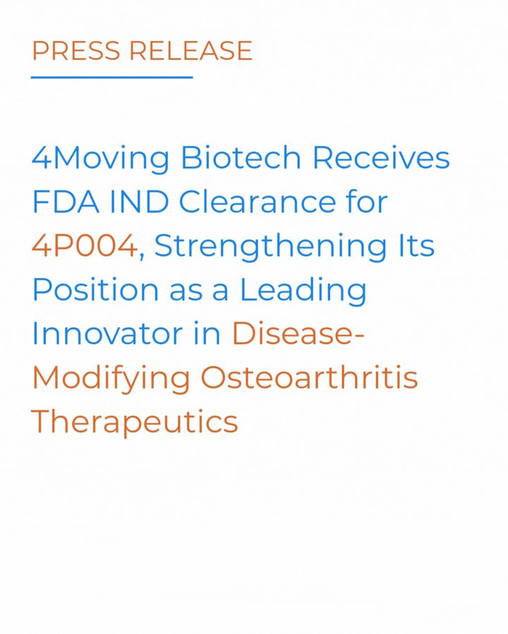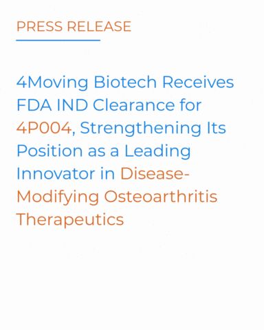 4Moving Biotech Receives FDA IND Clearance for 4P004, Strengthening Its Position as a Leading Innovator in Disease-Modifying Osteoarthritis Therapeutics