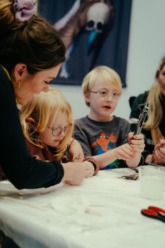 I værkstedet kan I lave grønlandske amuletter af sælskind eller forme jeres egne tupilakker i ler. De mindste kan tumle rundt på den grønlandske slæde med skind, mens de større børn og voksne fordyber sig i kreative aktiviteter og lærer at beskytte sig mod onde ånder.