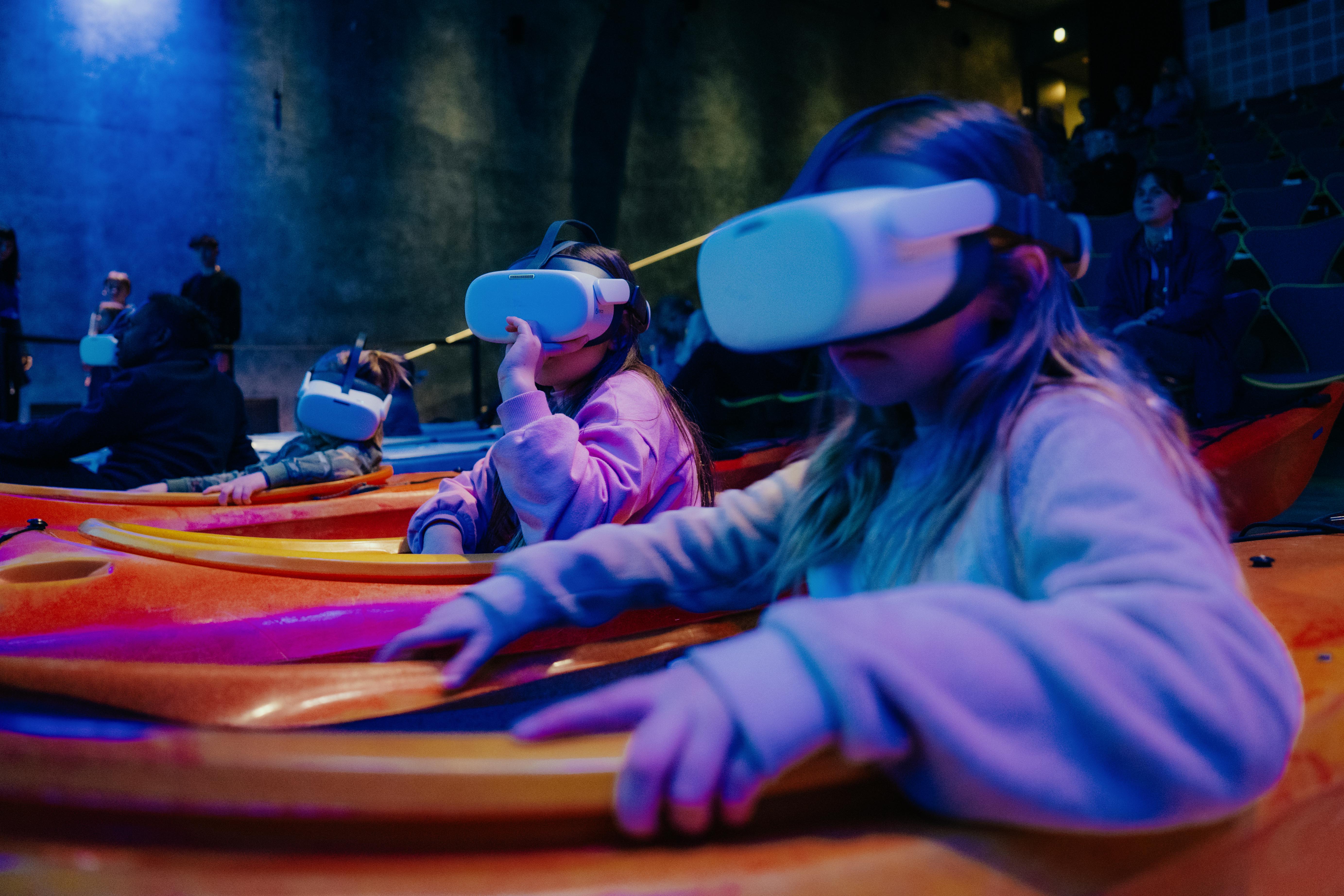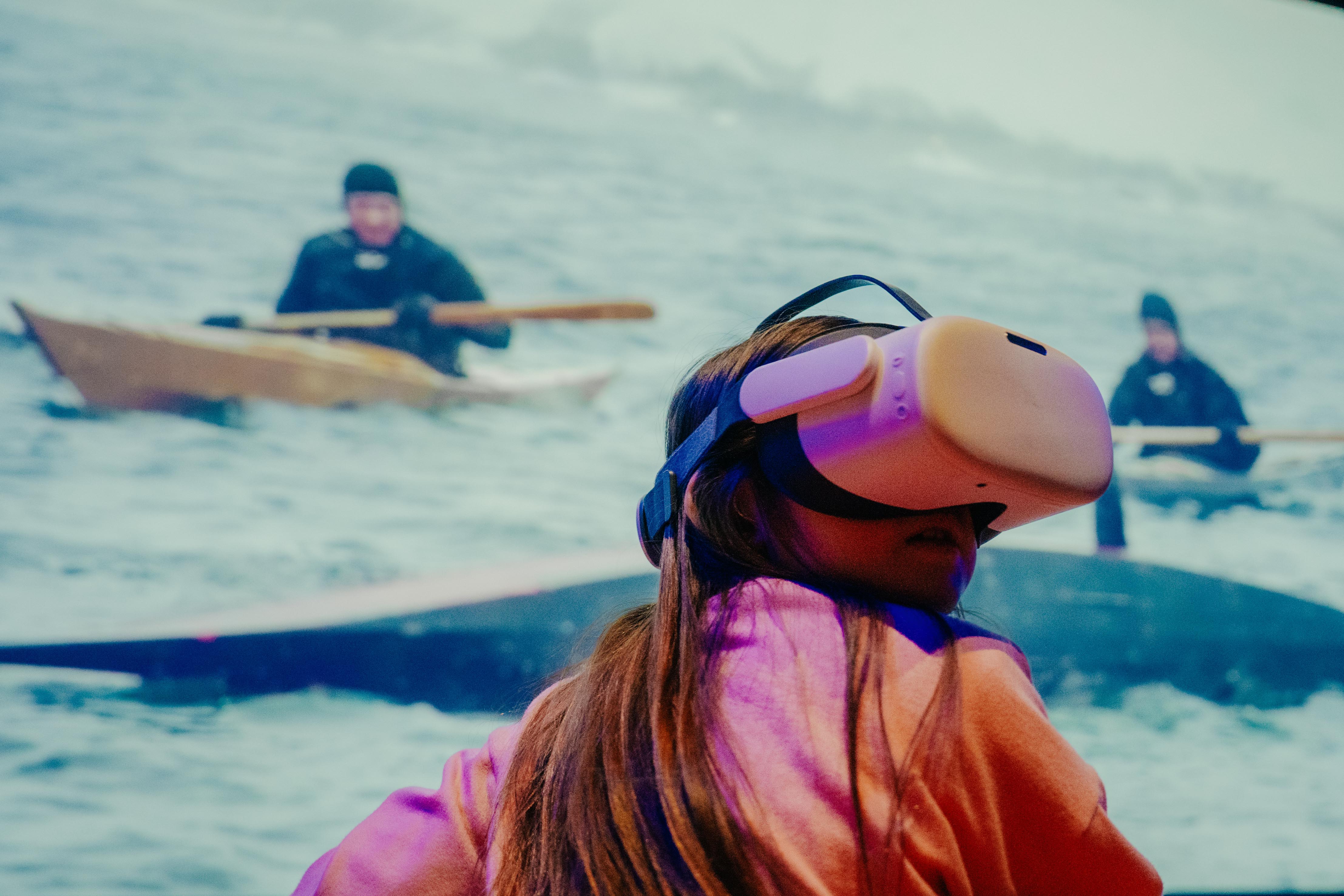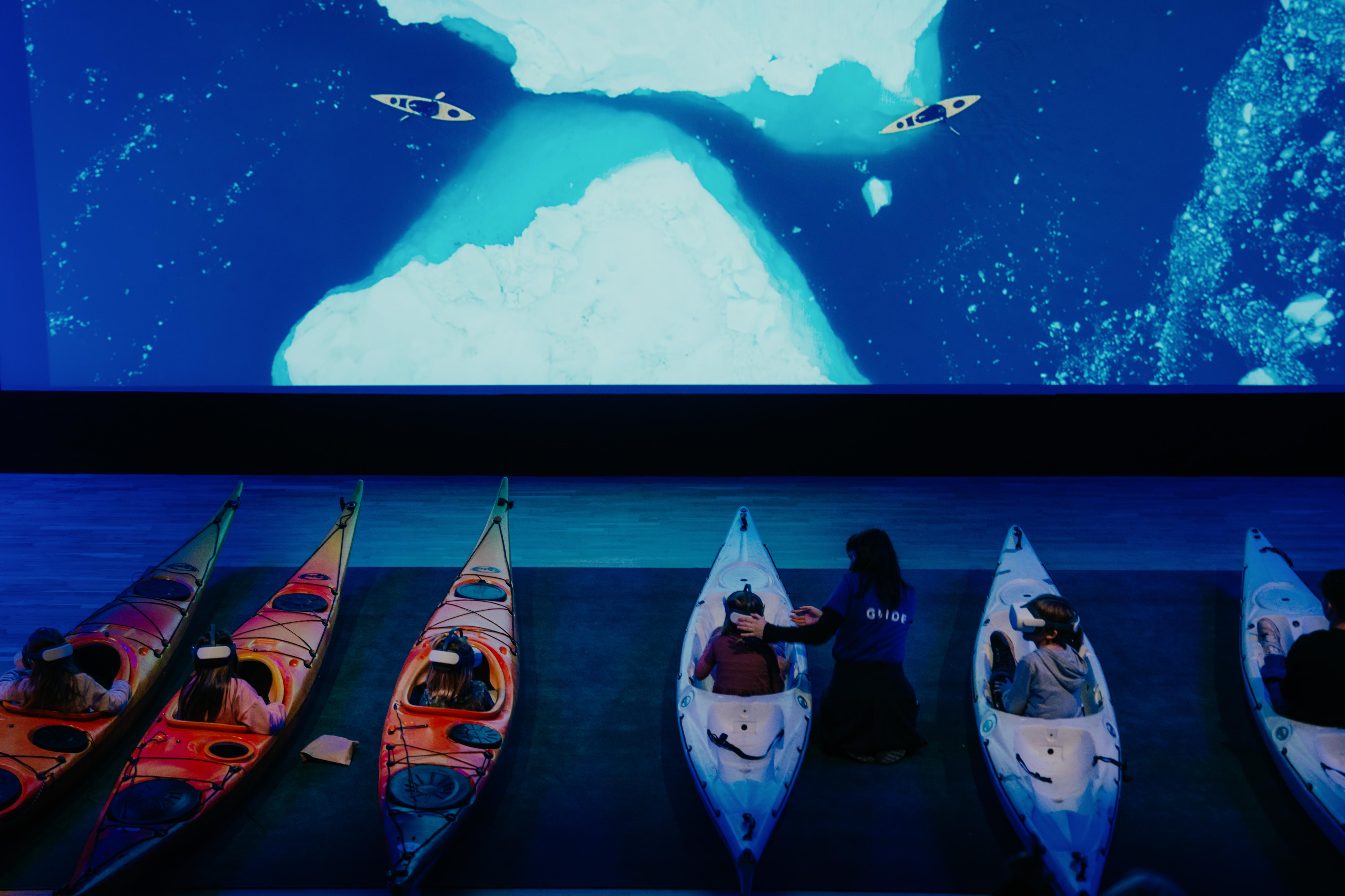 I vores biograf har vi fire kajakker, der med hjælp fra VR-briller tager jer med til Nuuk fjord. I kan ro ud på det blikstille hav og opleve den grønlandske natur fra havet.