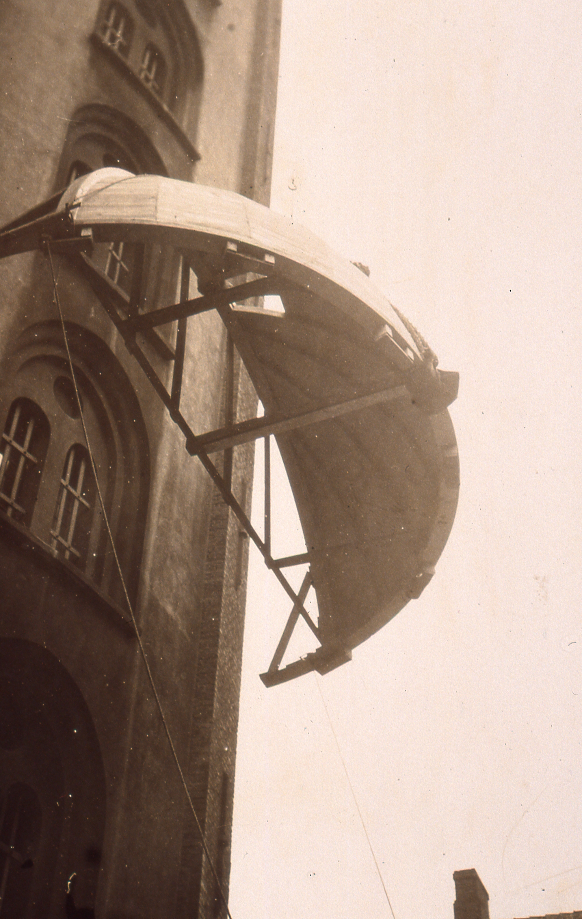Om kuplen: Toppen af Rundetaarn har set forskellig ud gennem tiden. Den nuværende kuppel er fra 1929. Den er opført som et såkaldt ’Folkeobservatorium’ og er tegnet af arkitekt Henning Hansen. Den blev sidste gang restaureret i perioden 1968-1970. Kuplen er udført i fyrretræ beklædt med kobber, vejer tre ton og fylder fem meter i diameter.