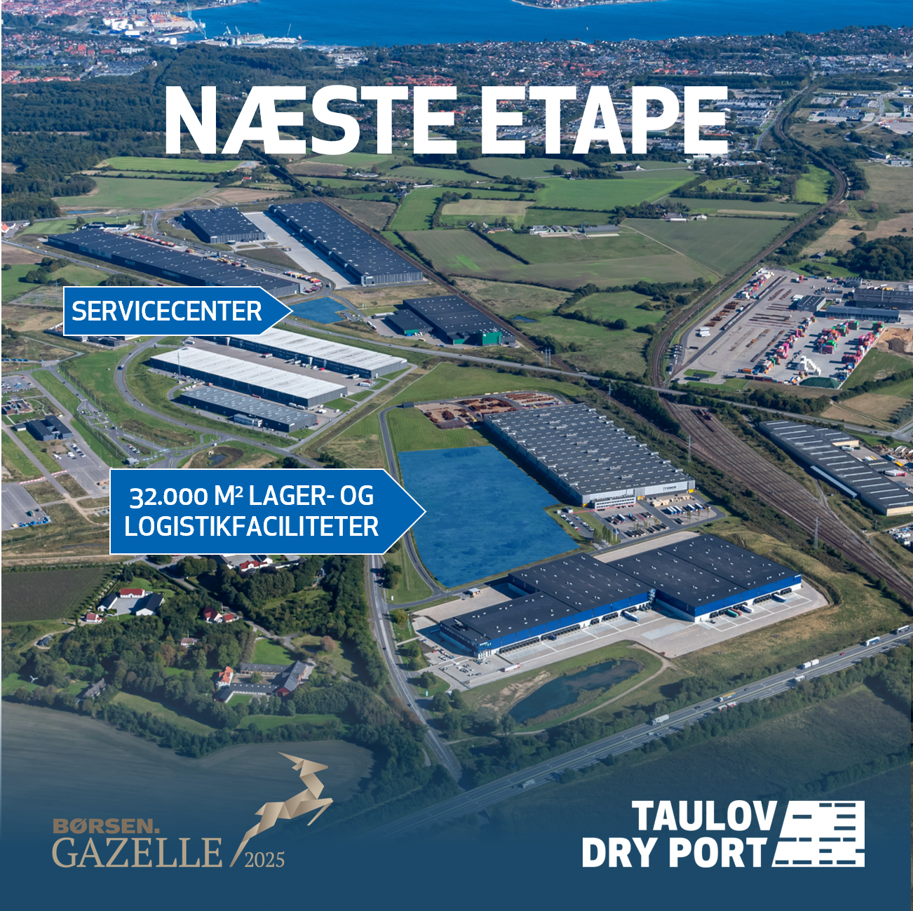 Efter fuld udlejning af 300.000 kvadratmeter lager- og logistikfaciliteter tager Taulov Dry Port nu næste skridt i udviklingen: Et nyt generisk byggeri på 32.000 kvadratmeter samt etableringen af et samlet servicecenter for tung transport.