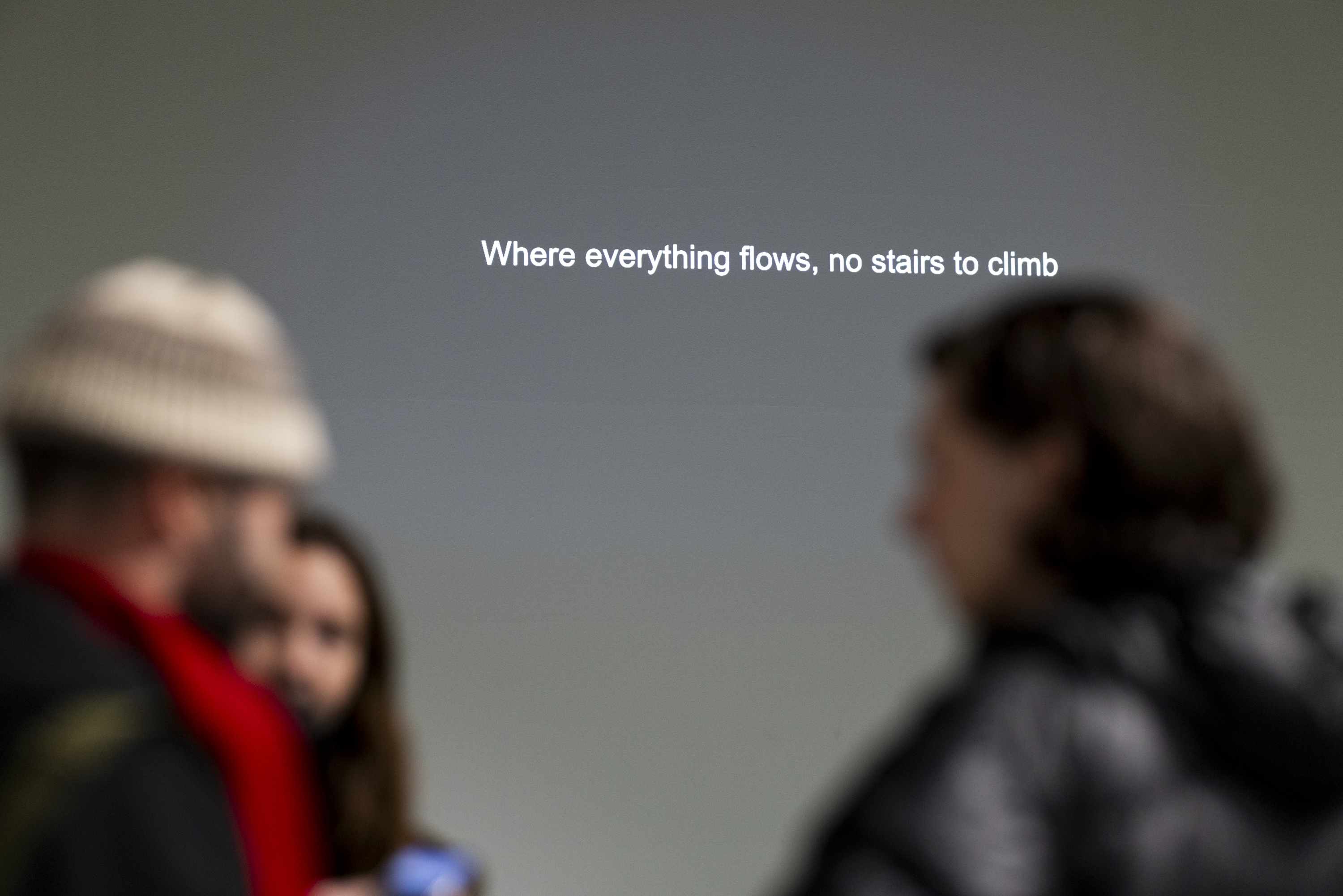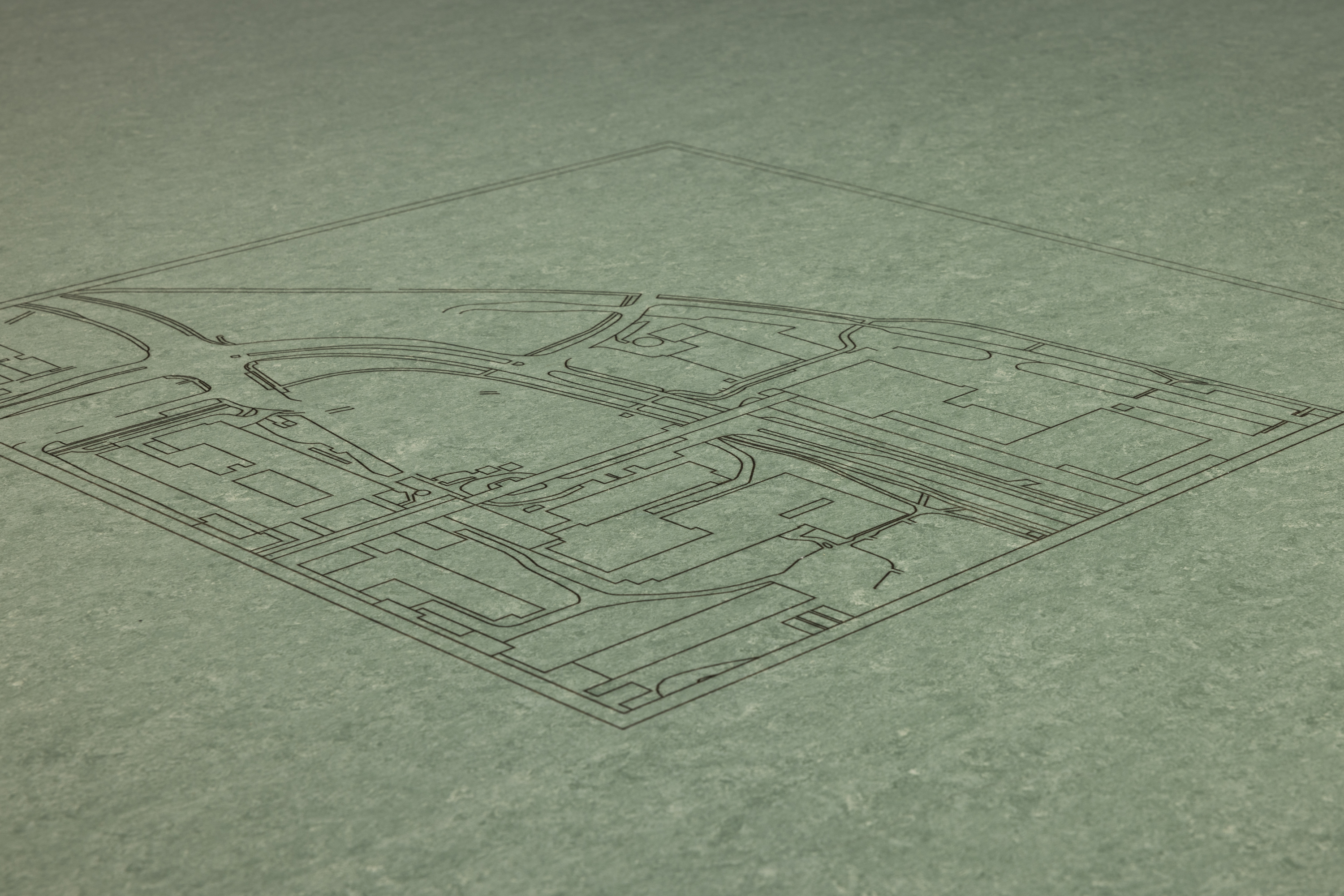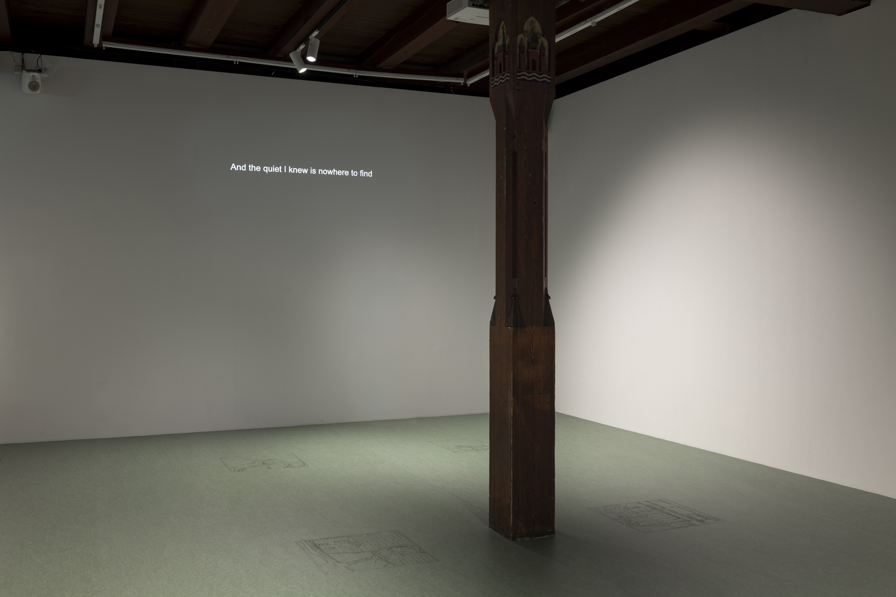 Udstillingsrummets gulv dækkes af CNC-fræset linoleum baseret på en plantegning fra et moderne superhospital. Arkitekturen trækkes dermed fysisk ind i rummet som et spor, publikum bevæger sig hen over, og understreger værkets fokus på, hvordan rum påvirker både krop og sind.