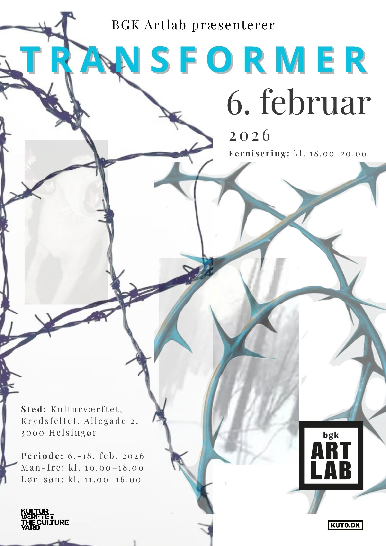 Fra den 6. til 18. februar præsenterer studerende fra Kulturværftets kunstuddannelse BGK Artlab udstillingen TRANSFORMER på Kulturværftet i Helsingør. I udstillingen undersøger de unge kunstnere ’forandring’ som både proces og tilstand – gennem fotografi og video.