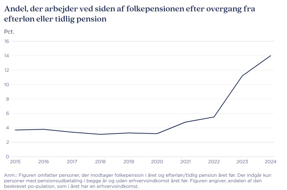 Et stigende antal pensionister vender tilbage til arbejdsmarkedet. Det er bemærkelsesværdigt, at det især er personer på efterløn eller tidlig pension, som begynder at arbejde, når de bliver folkepensionister.