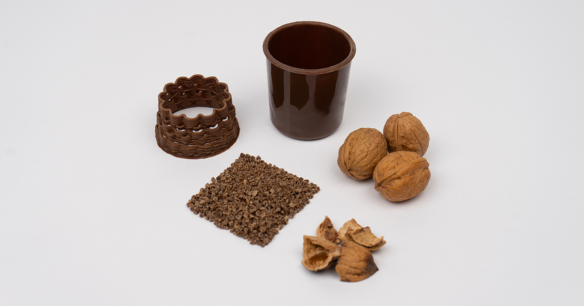 Den københavnske startup har udviklet et fuldt biobaseret kompositmateriale til sprøjtestøbning og 3D-print – fremstillet af upcyclet affald fra valnøddeskaller og et biologisk nedbrydeligt bindemiddel. De skaber med andre ord et bæredygtigt alternativ til plastik.