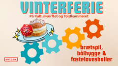 Vinterferien nærmer sig, og på Kulturværftet og Toldkammeret inviterer vi traditionen tro til en uge fyldt med leg, kreativitet og hygge. Glæd jer til alt fra teater og tegneworkshops til brætspil, bålhygge og ikke mindst den sprødeste tradition: Fastelavnsbollefabrikken.