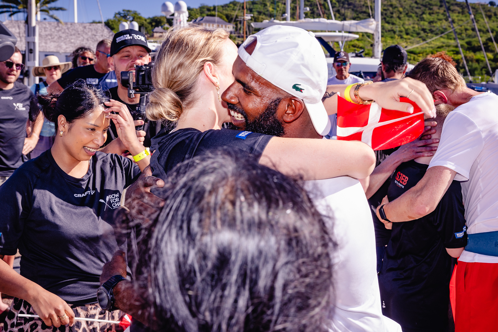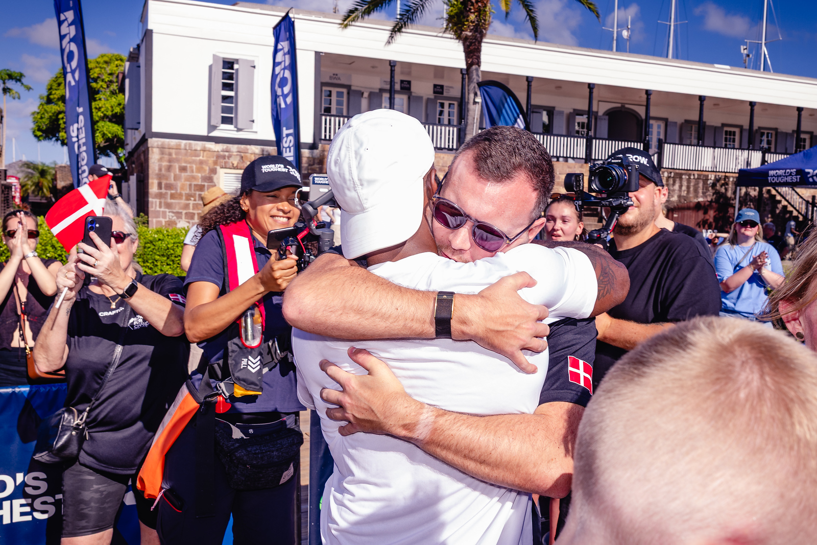 Der blev hujet, klappet og jubelråbt af lungernes fulde kraft, da de to danske roere Simon Svendsen og Zaxsina Thiyakarajah mandag eftermiddag efter 43 døgn, 1 time og 35 minutter kunne træde ud af den specialbyggede robåd. Den har været rammen om deres liv og deres hårdeste udfordring, og i dag kunne de endelig sætte deres hårdt prøvede ben på kajen på den caribiske ø Antigua til glædes- og gensynstårer og lange, tætte kram med børn og familie.