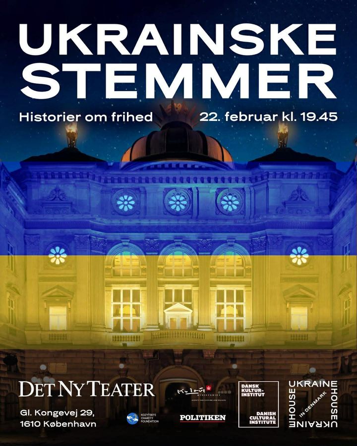 The event takes place on the eve of the fourth anniversary of the full-scale invasion and is organized by Ukraine House in Denmark, the Danish Cultural Institute and Det Ny Teater as a solidarity celebration with a focus on Ukrainian literature, music and cultural exchange.